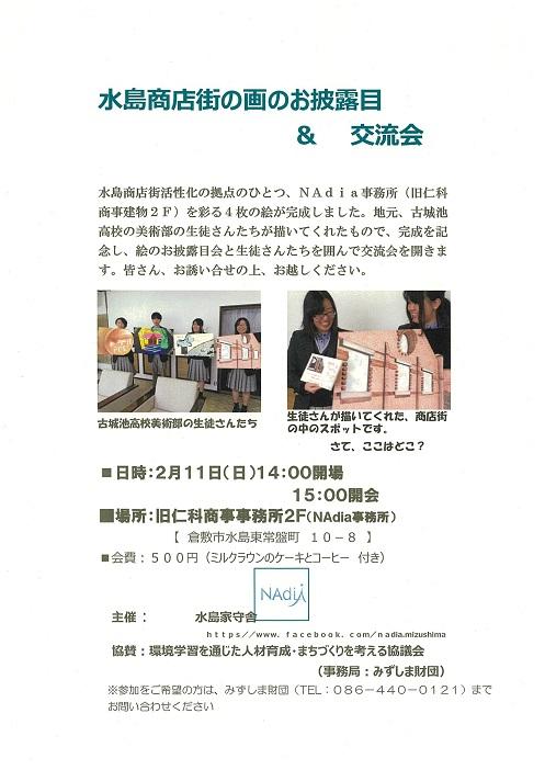 水島商店街の活性化を目指して「水島家守舎NAdia」がリノベーションを している事務所(旧仁科商事建物2F)を彩る絵を、地元古城池高校の 美術部の生徒さんが描いてくれました。