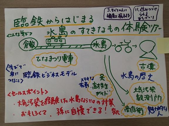 その後、ファシリテーターの西村仁志氏(広島修道大学)の進行で、3グループに分かれ、それぞれお題をいただき、水島での学びをSDGsの目標に照らし合わせながら整理をしました。