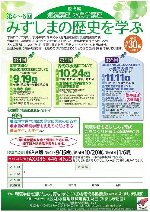 次回は、10月24日(火)、福田地区を中心に旧石器時代から古墳時代の水島について 倉敷埋蔵文化財センター藤原好二様にお話しいただきます。