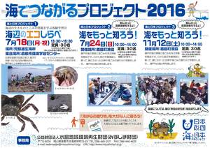 2016.10.25 【ご案内】まだ間に合います!海をもっと知ろう! 皆さんこんにちは。理事・研究員の塩飽です。 7月に開催した「海をもっと知ろう!漁業体験」の 第2回目(11/12)の申し込み締め切りが、10/28となっております。 30名定員に現在23名のお申し込みをいただいておりますので、 もう7名分定員に余裕があります。 どうしようか、まだ迷っておられる方、ぜひこの機会に 親子で海の思いでづくりをしませんか。 皆さんのご参加をお待ちしています。 本イベントは、日本財団「海と日本プロジェクト2016」の一環として開催します。