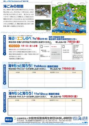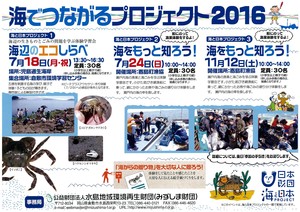 2016.06.20 【ちらしができました】海でつながるプロジェクト2016 海でつながるプロジェクト2016 ちらしがたった今、完成しました! 小学生以上親子のかたを対象に、海での体験があります。 海からの贈り物を大切な人に送る絵葉書づくりもします。 みなさんのご参加をお待ちしています。 本イベントは 日本財団の海と日本プロジェクトの一環として、実施します。