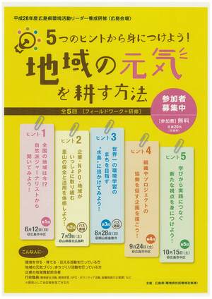 平成28年度広島県環境活動リーダー養成研修<広島会場>の募集がスタートしたそうです。