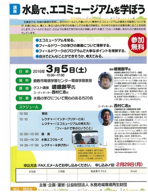 地域の資源を発見し、学びのツールとして磨いていく事例やエコミュージアムの概念と可能性について学び、水島の学びの地域としての可能性とその中でのご自身の役割について感じることを目的に開催します。