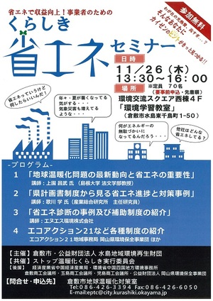 いよいよ直前ですが、「くらしき省エネセミナー」が
