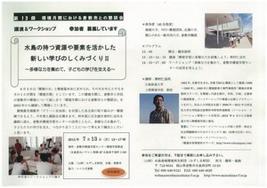 2015.06.04 Category: みずしまプロジェクト 【参加者募集】第13回環境月間における倉敷市との懇談会 明日、6月5日は環境の日。6月は環境月間、様々なイベントや環境学習の機会がありますね。 みずしま財団では、2003年から毎年続けている、 行政と市民で環境について語る懇談会を今年も開催します。ぜひ、興味のある方はご参加ください。 諸般の都合で7月13日の開催です。よろしくお願いします!