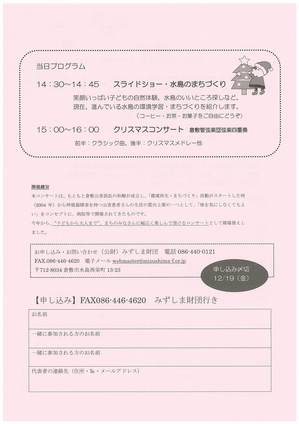 水島愛あいサロン コミュニティフロアで、クリスマスコンサートを開催します。
