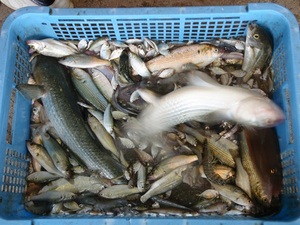 今回とれたお魚は、ボラ、スズキ、アナゴ、エビ、ベイカ、コウイカなど。