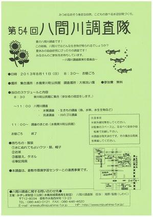 第54回目となる、八間川調査(夏調査)を8月11日(日)に開催します。