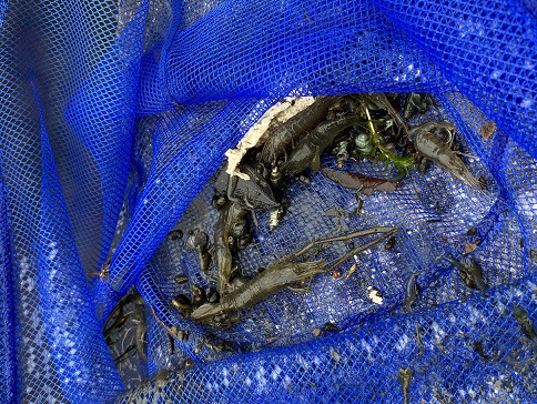 ごみ回収中にヌマエビやテナガエビ、トンボのヤゴ、ドンコやフナなどの生物も見つかりました。