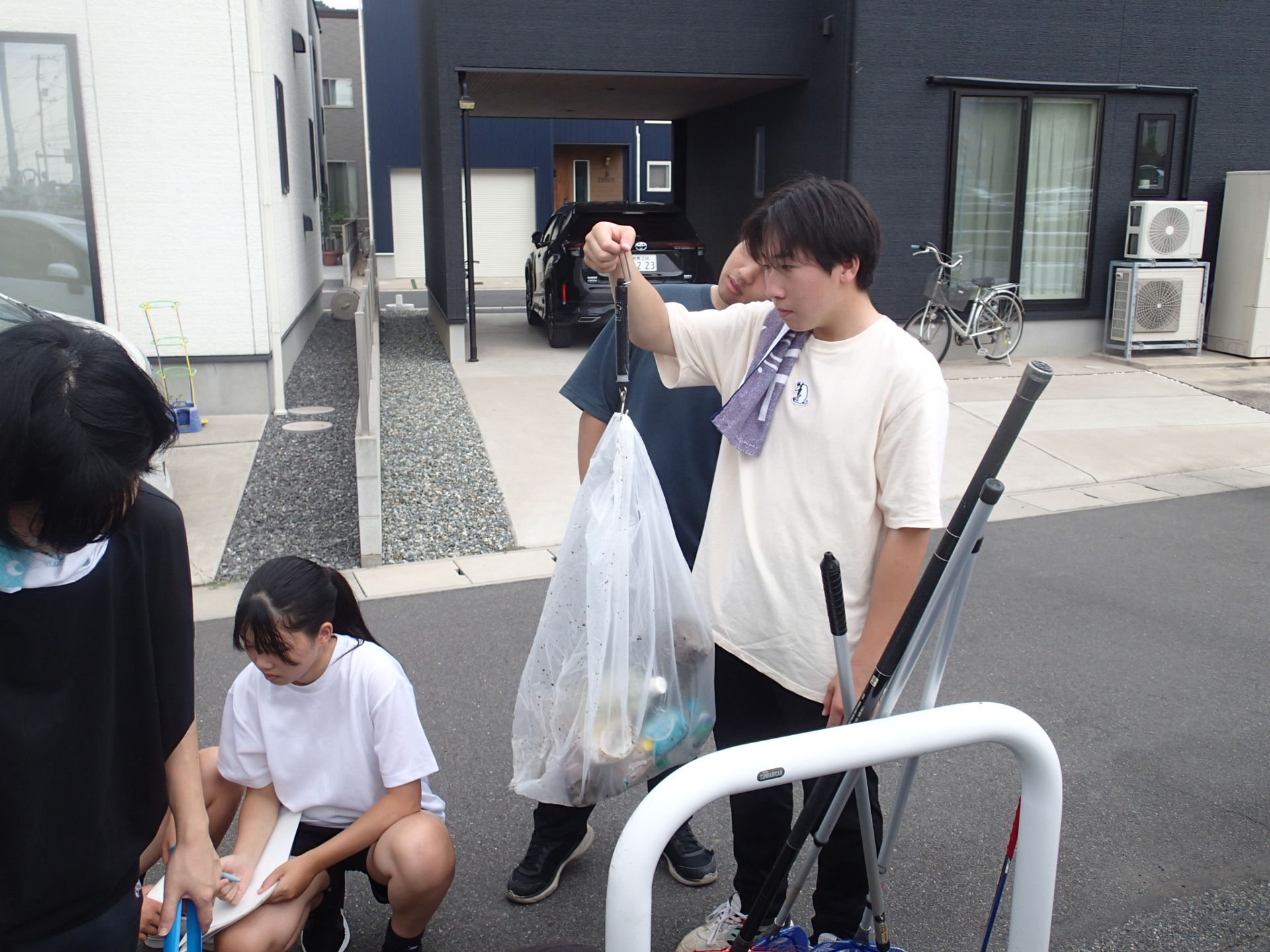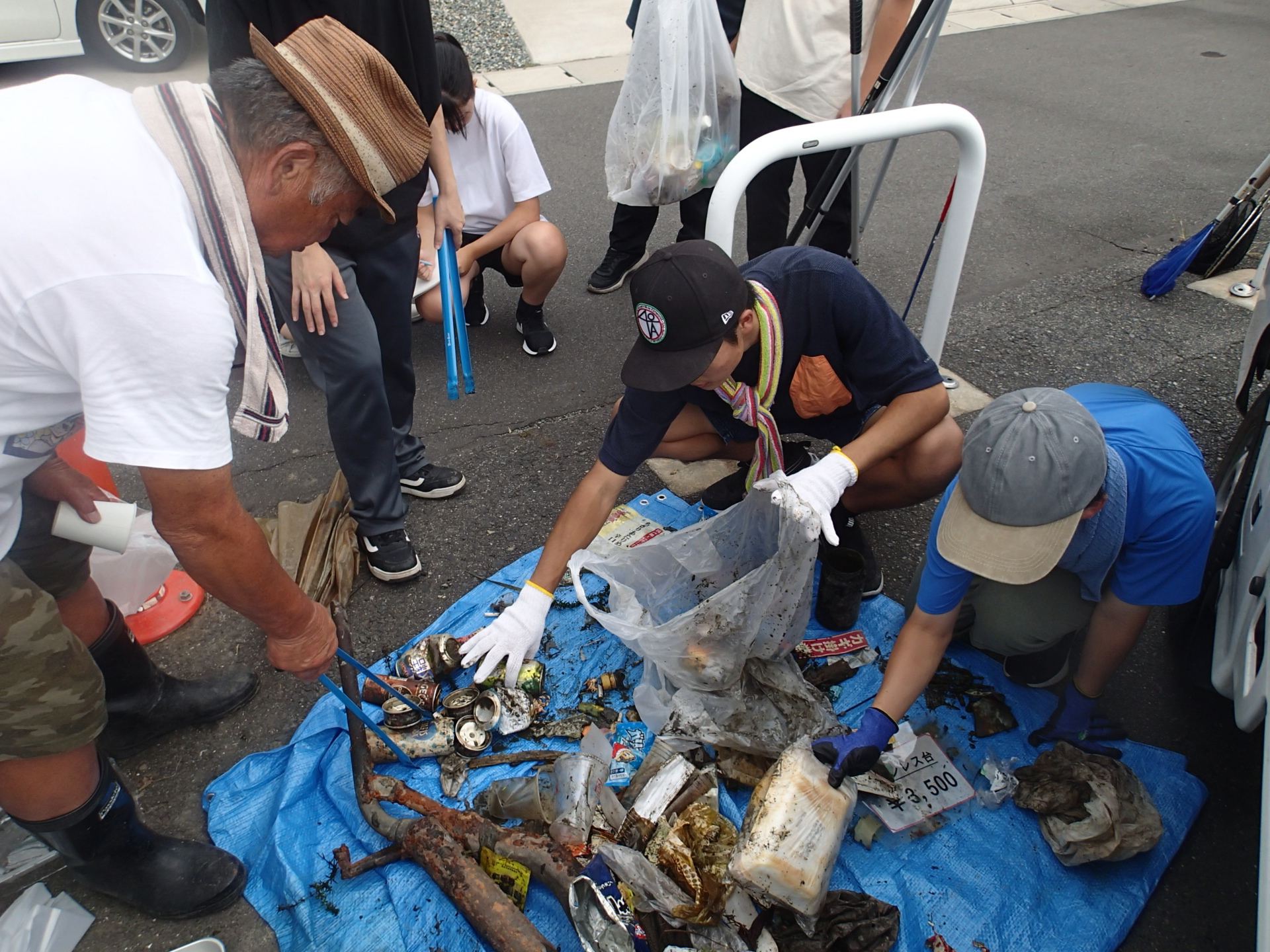 水路沿いを歩いているときは、そんなにごみが無いように見えましたが、実際に網を入れてみると、大きな金属の塊や傘など含めて約10㎏のごみを回収できました。