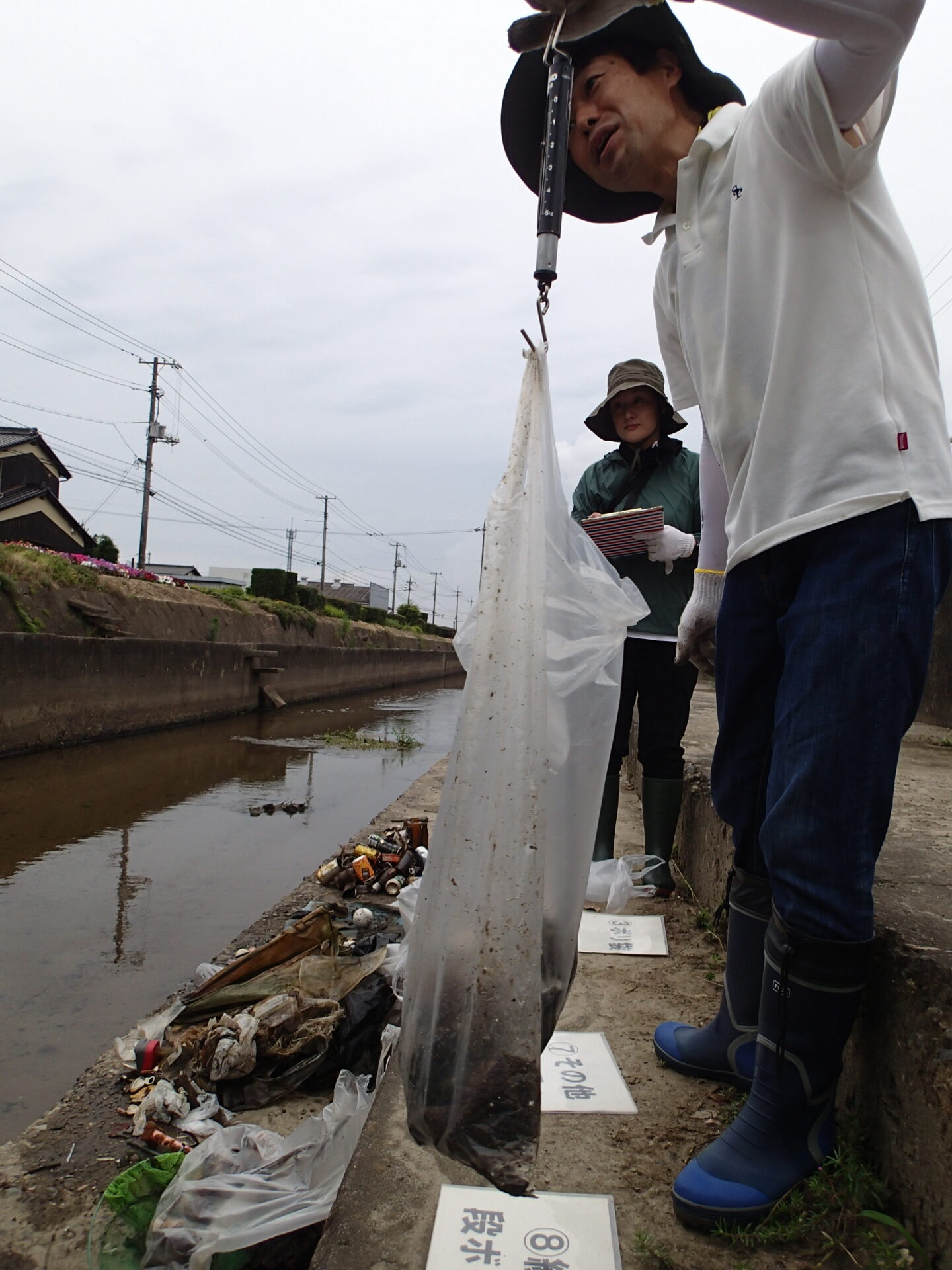 ここのところの雨の影響か、軽いプラスチック系のごみは少なめで、川底に沈んだ袋・シート類が約6㎏、ビン・缶や金属類なども約7㎏回収されました。