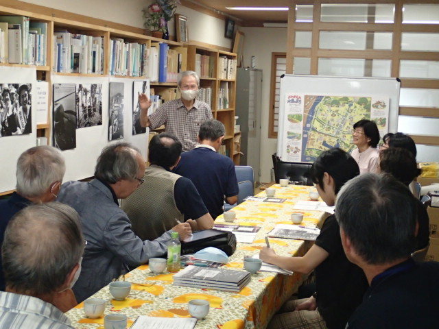 あさがおギャラリーには、8年前に出版した際に『水島の記録 1968-2016』の写真パネルを厳選して展示し、第3回あさがおカフェを9月28日(土)に開催しました。