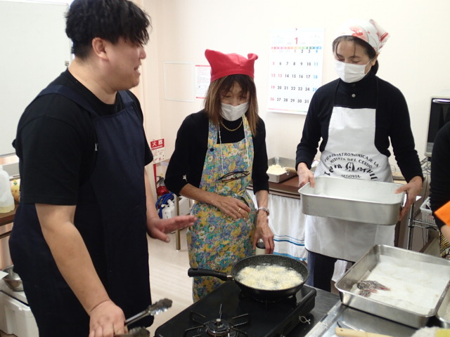 今回は、クロダイの刺身に加えて、フライを使った丼物、アラを使ったスープなど、クロダイの美味しさを引き出すメニューに、皆さん苦労しながらも、楽しく挑戦されていました。