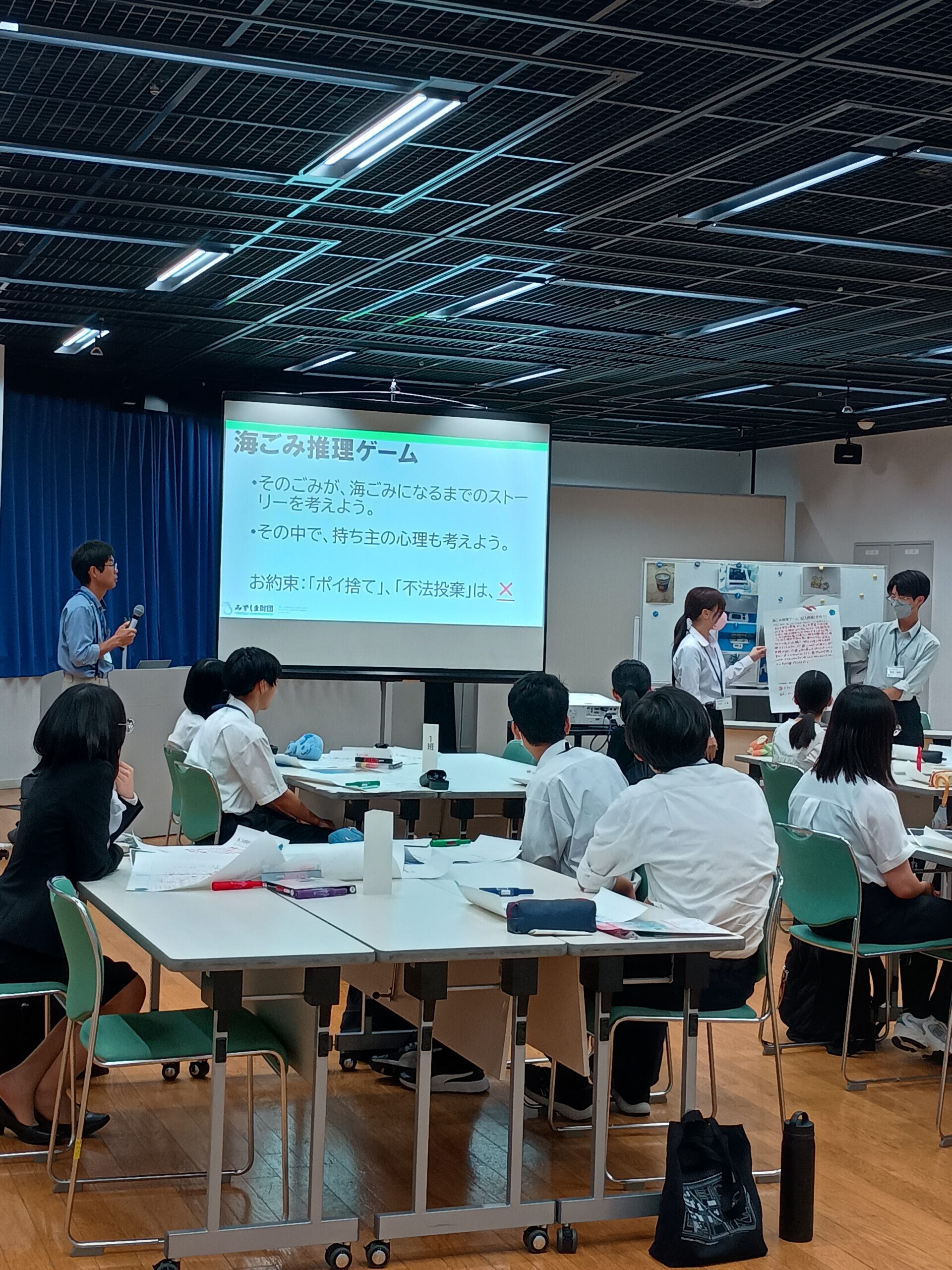 中・高校生16名の参加があり、「私たちはこの豊かな瀬戸内海を守るために何ができるのか」をテーマに、「海ごみ推理ゲーム」を通じて、交流・考えを深めました。