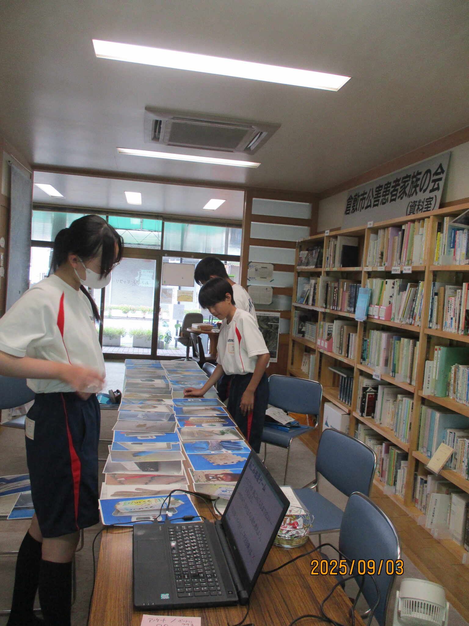 2日目は、「呼吸リハビリ講座」の準備作業や、「海ごみ推理ゲーム」によって、より当財団の活動への理解を深めてもらい、午後にはこれらをまとめて情報発信のための壁新聞づくりをスタートしました。