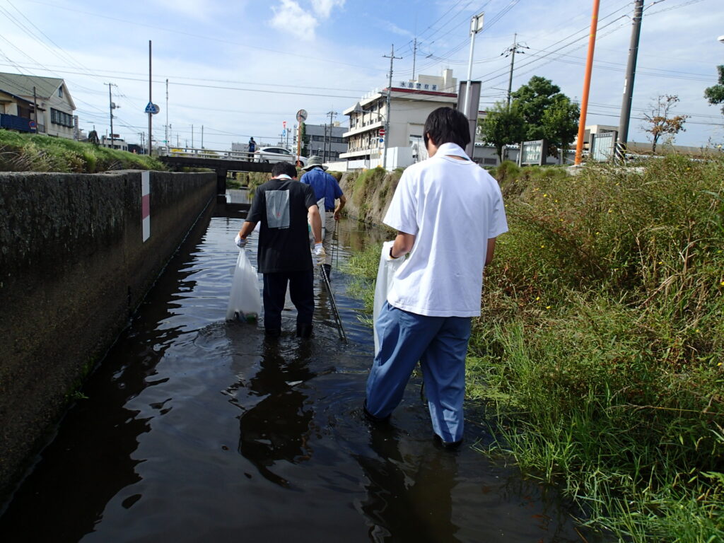 今回は、水島の中心部を流れる八間川水島支所前で、6名の参加者で行いました。