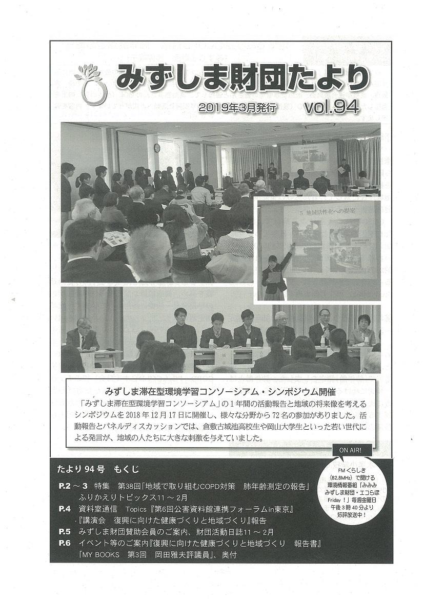 皆様こんにちは、みずしま財団たよりVol.94を3月28日に発行しました。