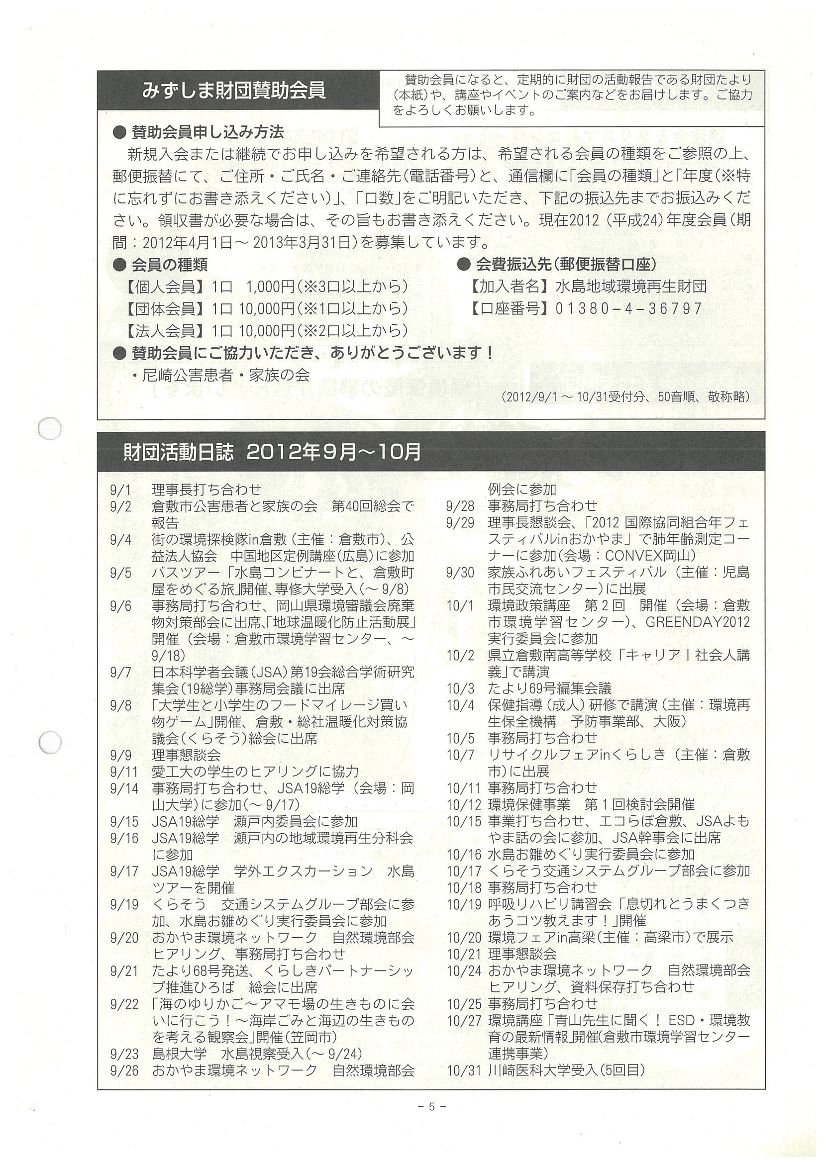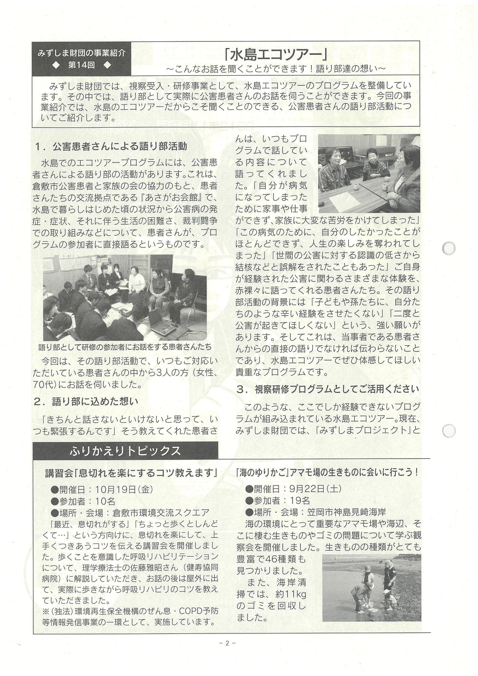 ■みずしま財団賛助会員、財団活動日誌9~10月