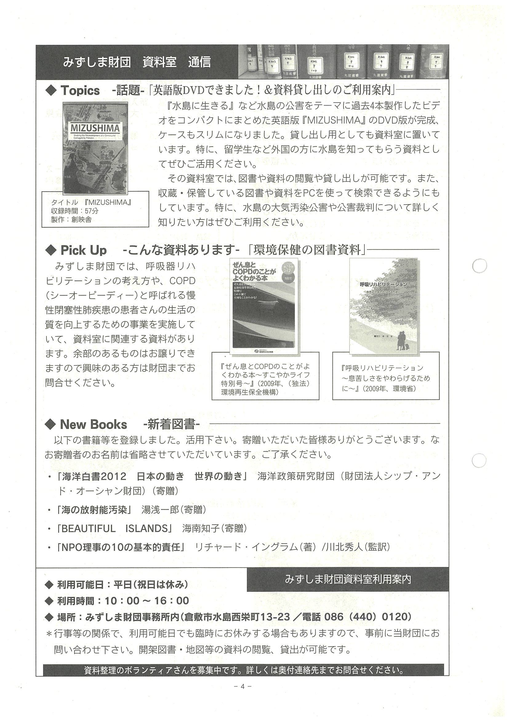 ■資料室通信「英語版DVDできました!&資料貸し出しのご利用案内」他