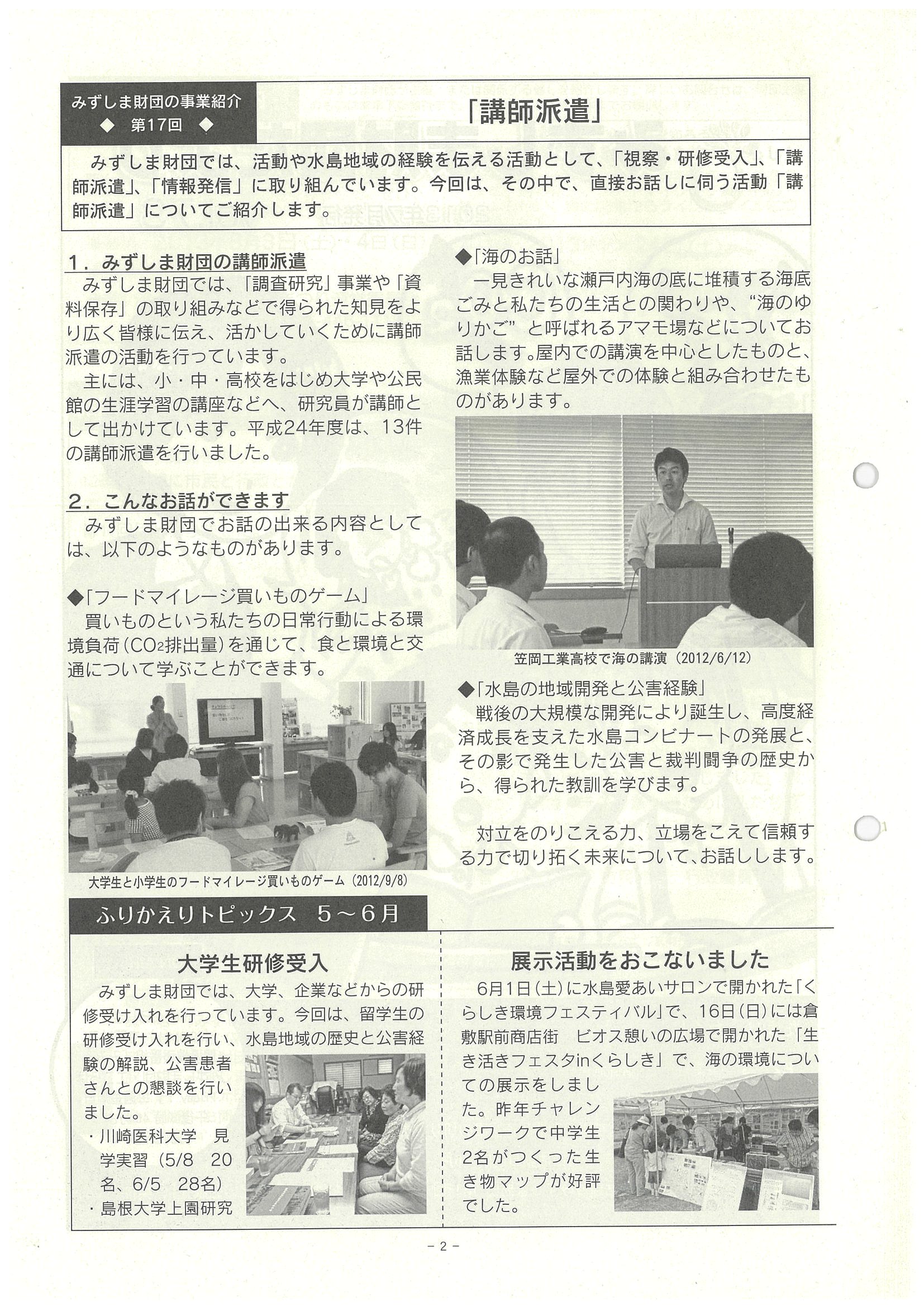 ■みずしま財団賛助会員、財団活動日誌5~6月