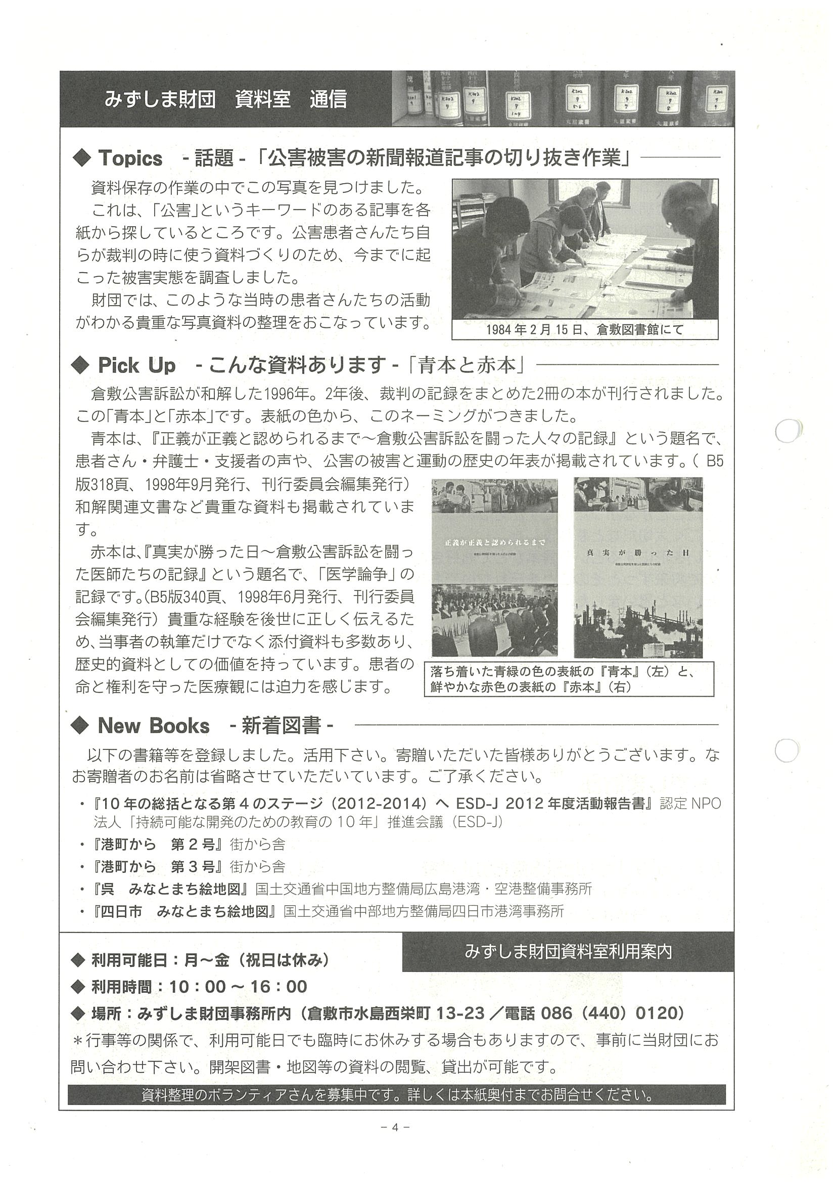 ■資料室通信「公害被害の新聞報道の切り抜き作業」他