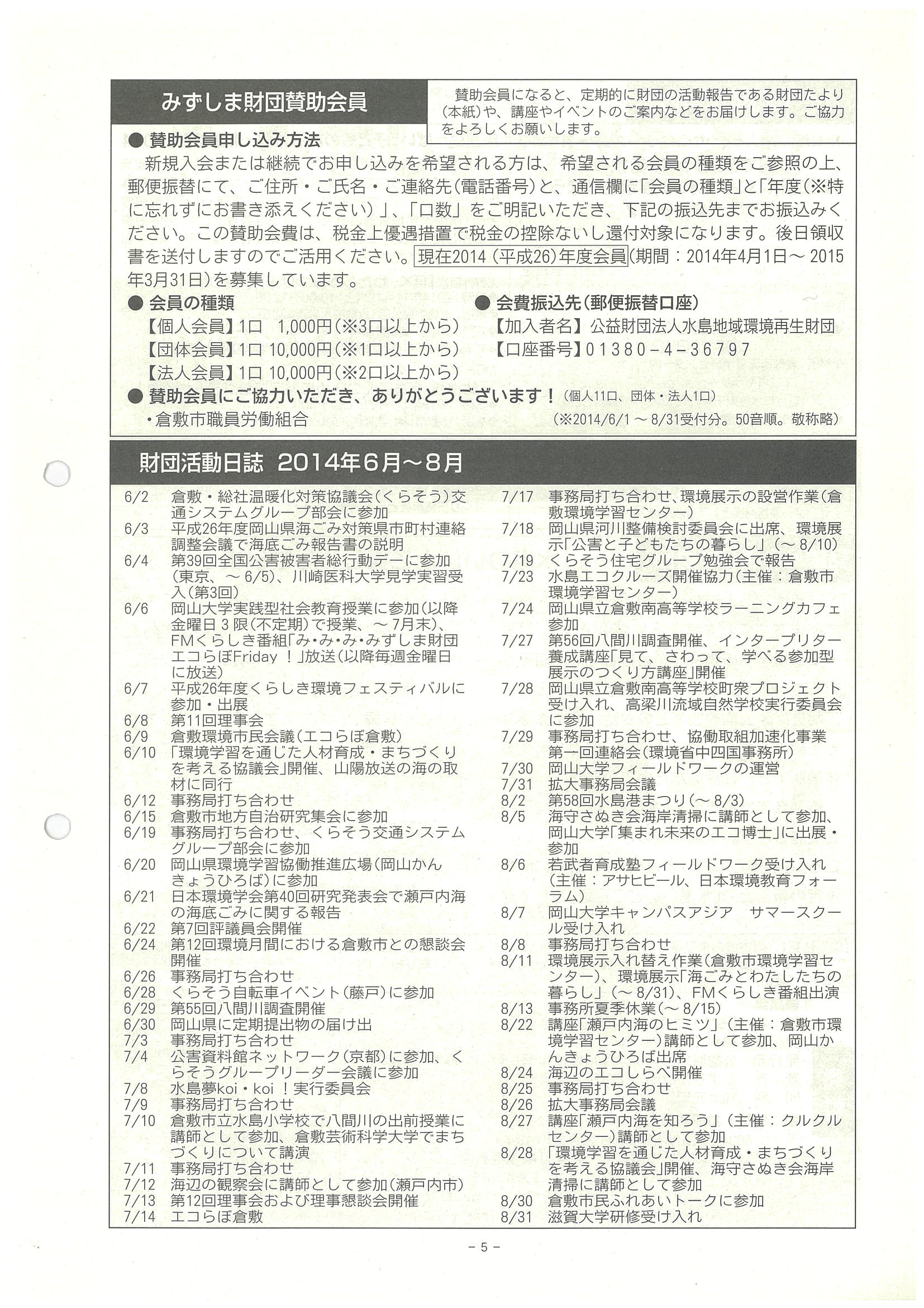 ■みずしま財団賛助会員、財団活動日誌6~8月