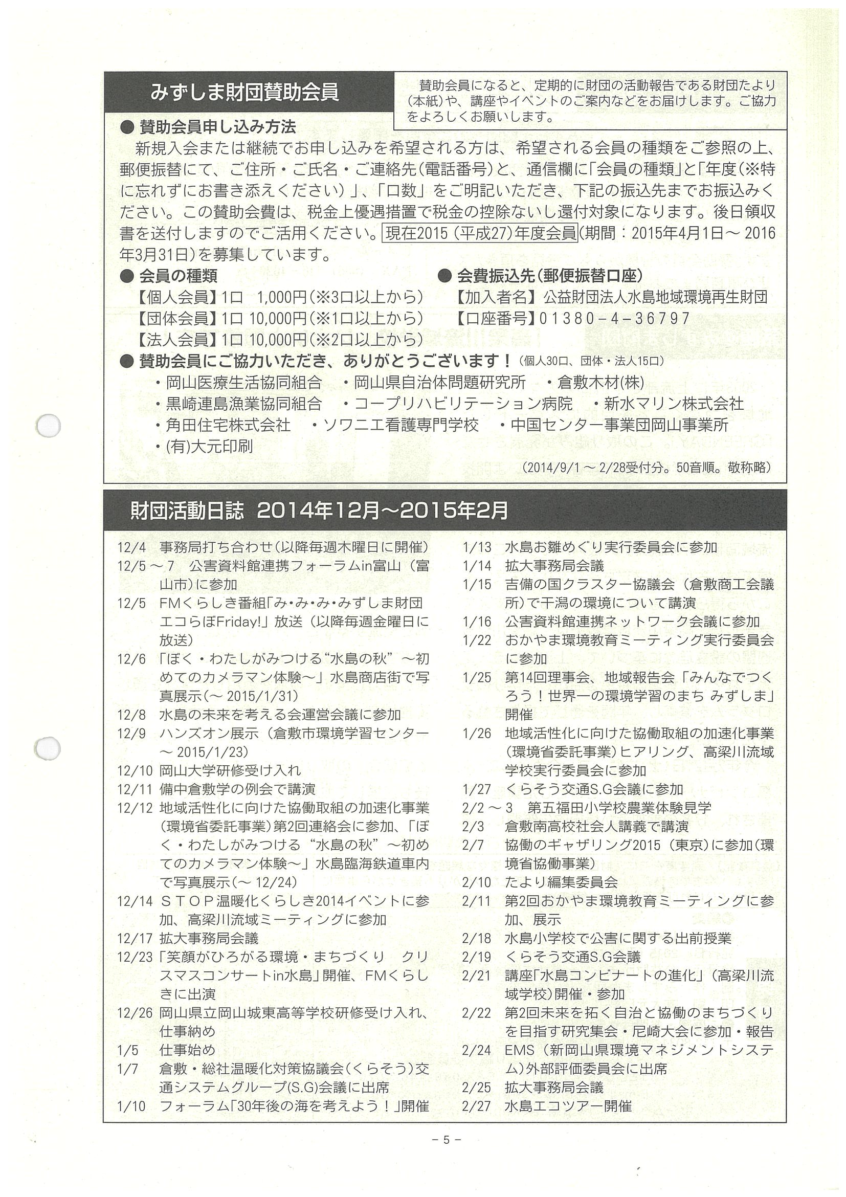 ■みずしま財団賛助会員、財団活動日誌12~2月