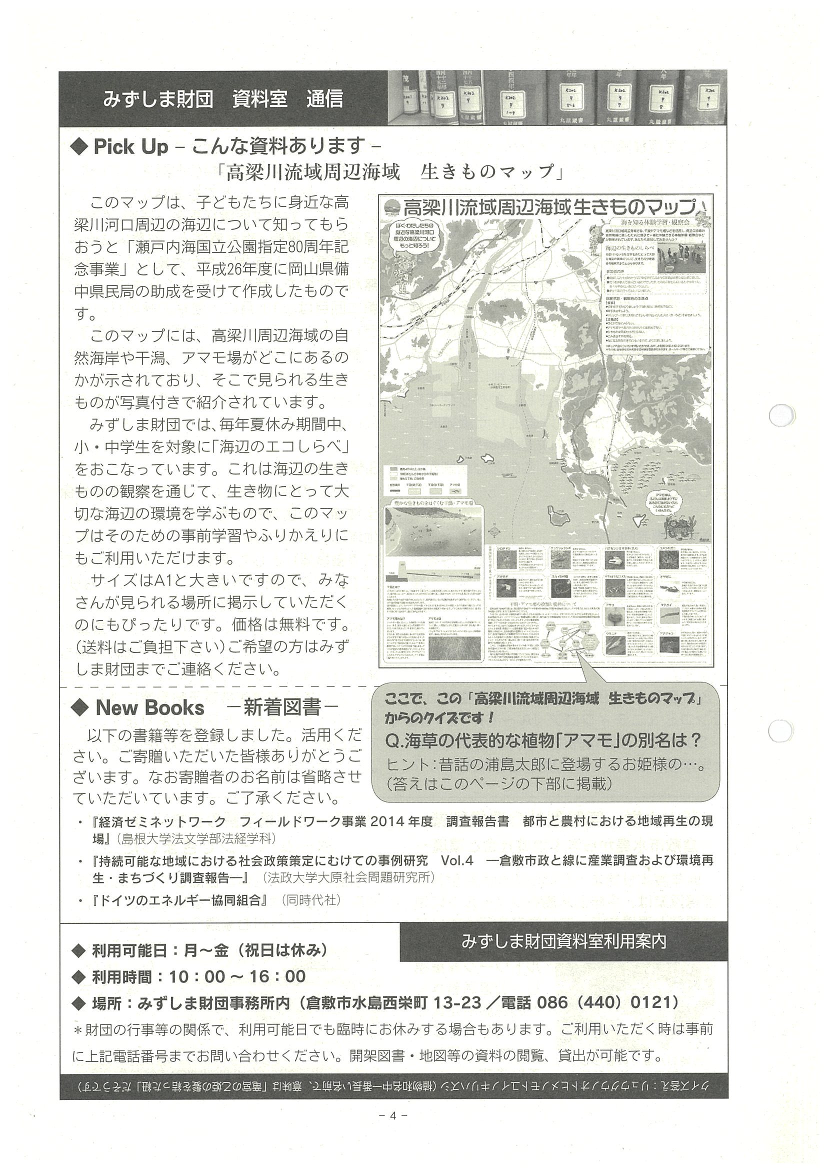 ■資料室通信「高梁川流域周辺海域 生きものマップ」他