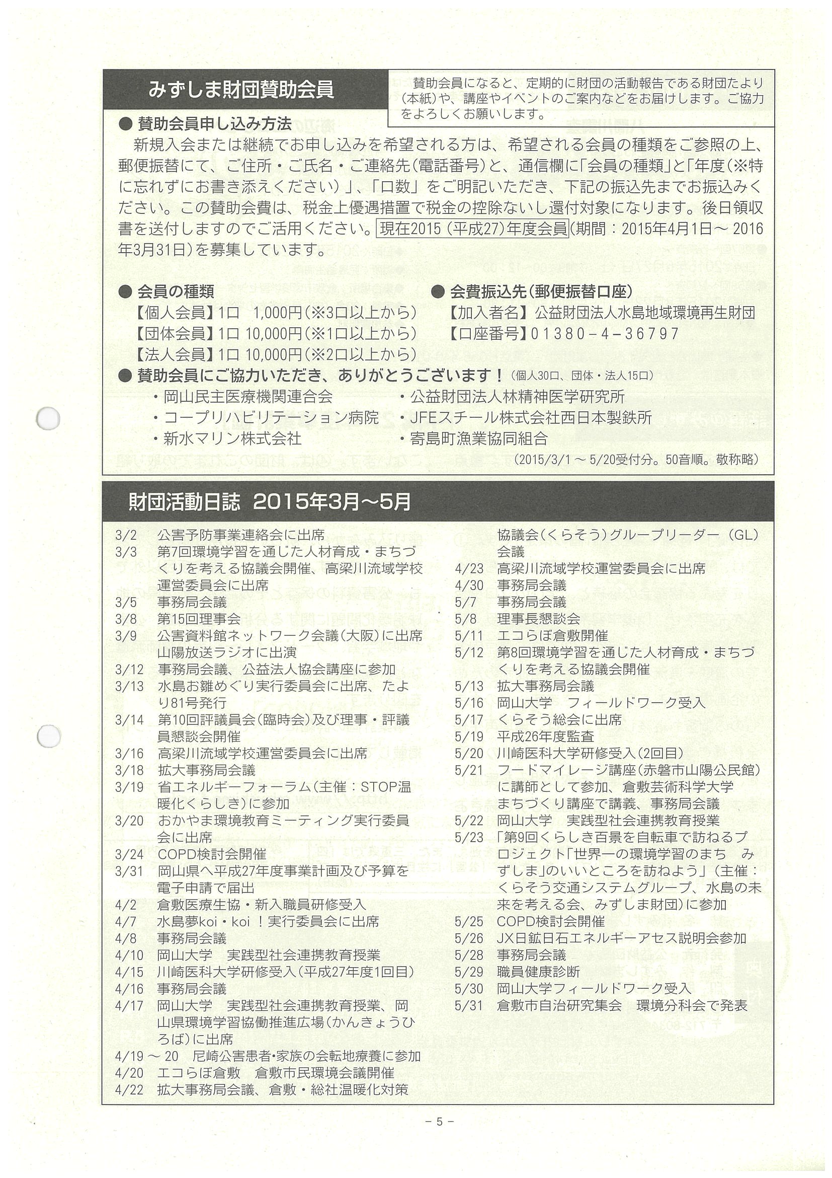 ■みずしま財団賛助会員、財団活動日誌3~5月