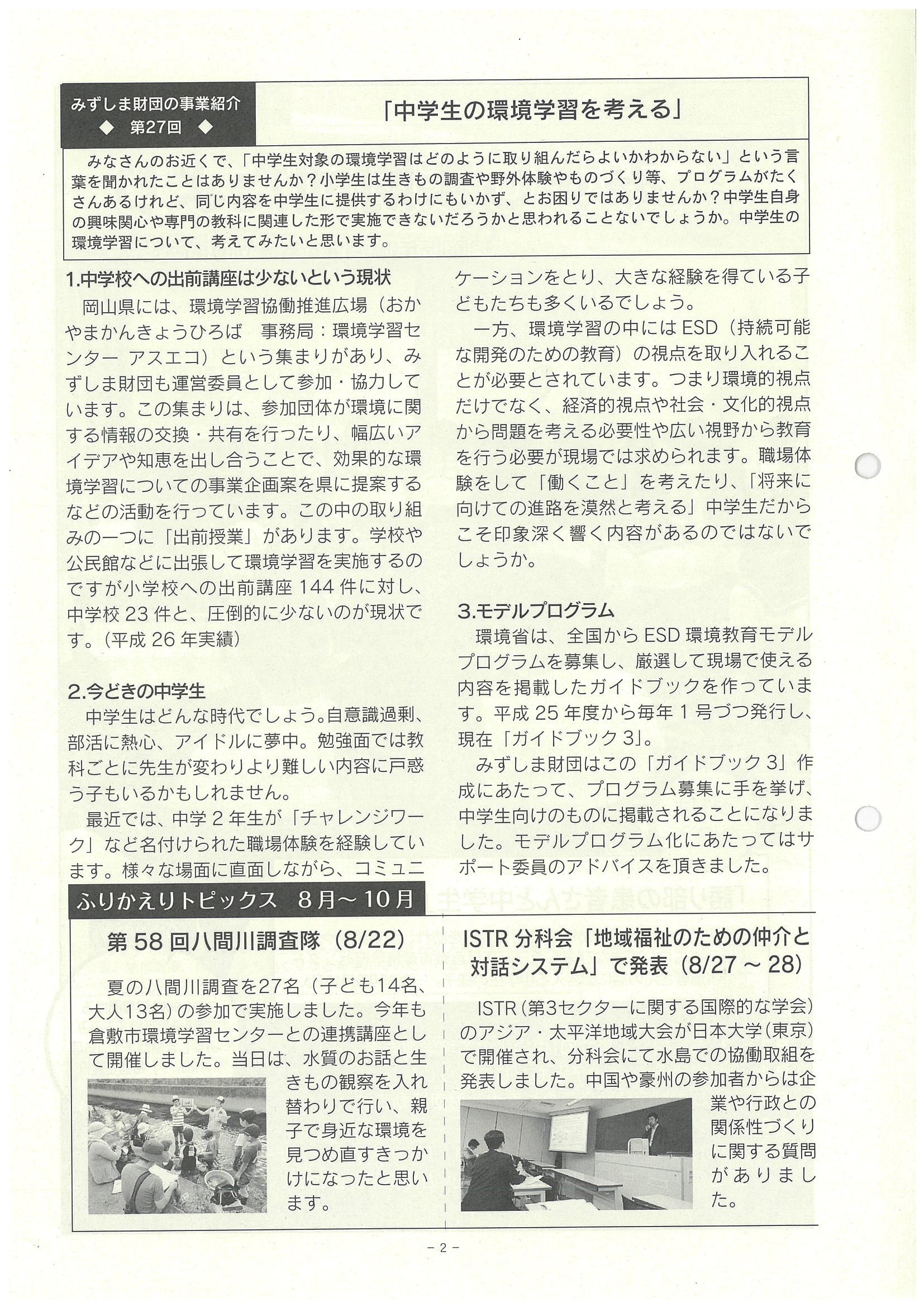 ■みずしま財団賛助会員、財団活動日誌8~10月