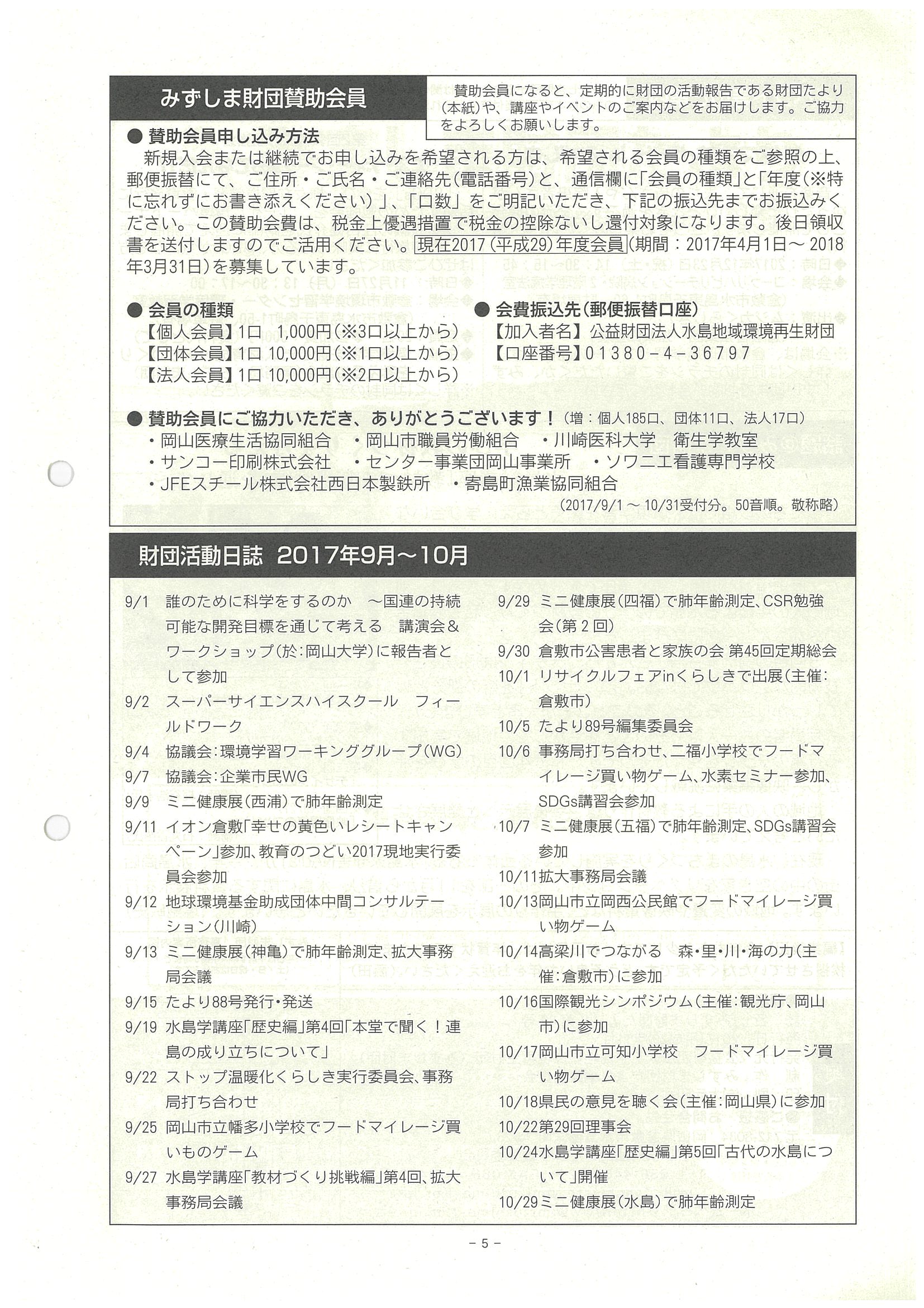 ■みずしま財団賛助会員、財団活動日誌9~10月