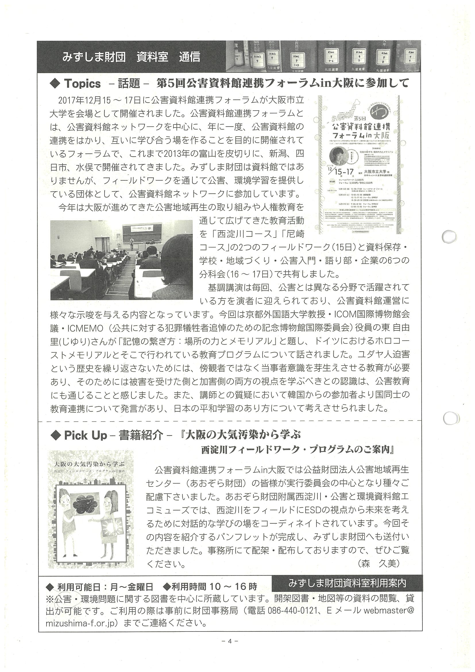 ■資料室通信Topics「第5回公害資料館連携フォーラムin大阪に参加して」PickUp書籍紹介『大阪の大気汚染から学ぶ西淀川フィールドワーク・プログラムのご案内』森久美