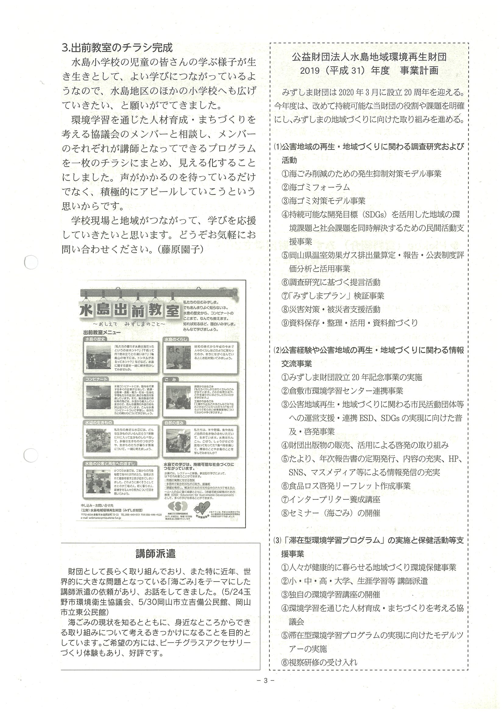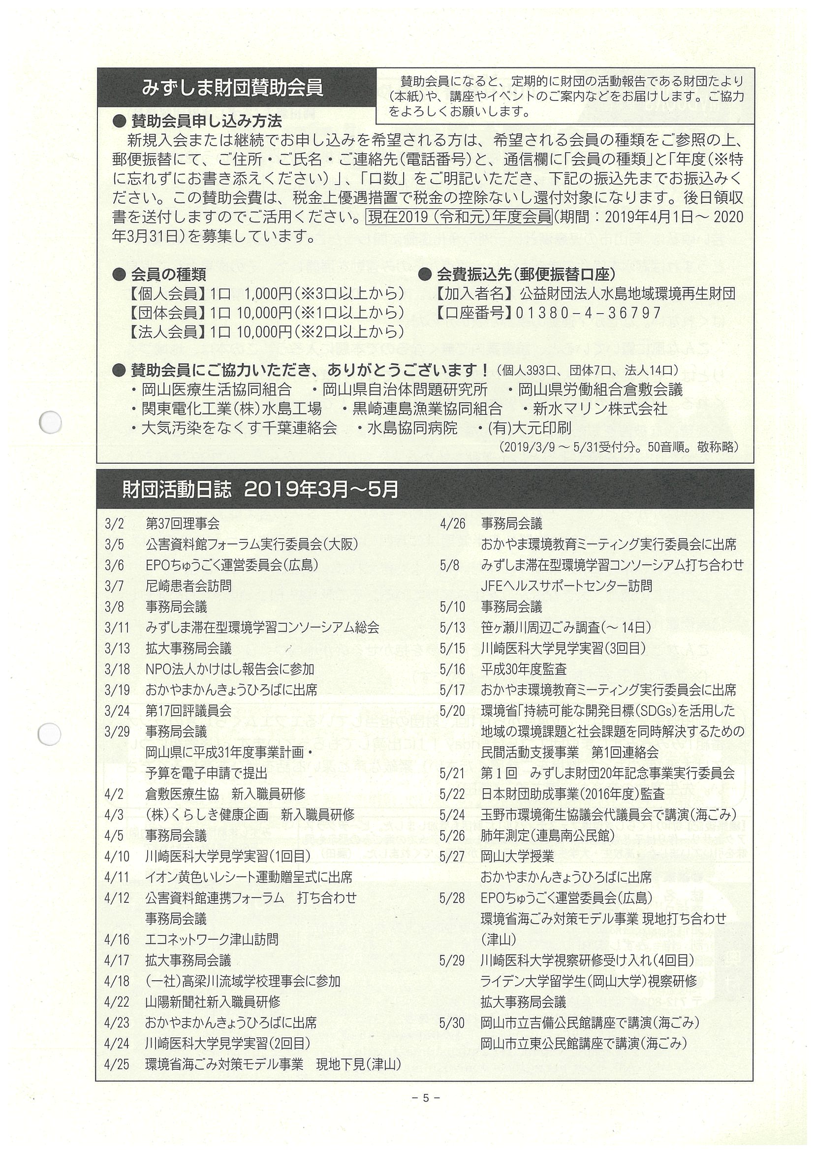 ■みずしま財団賛助会員、財団活動日誌3~5月
