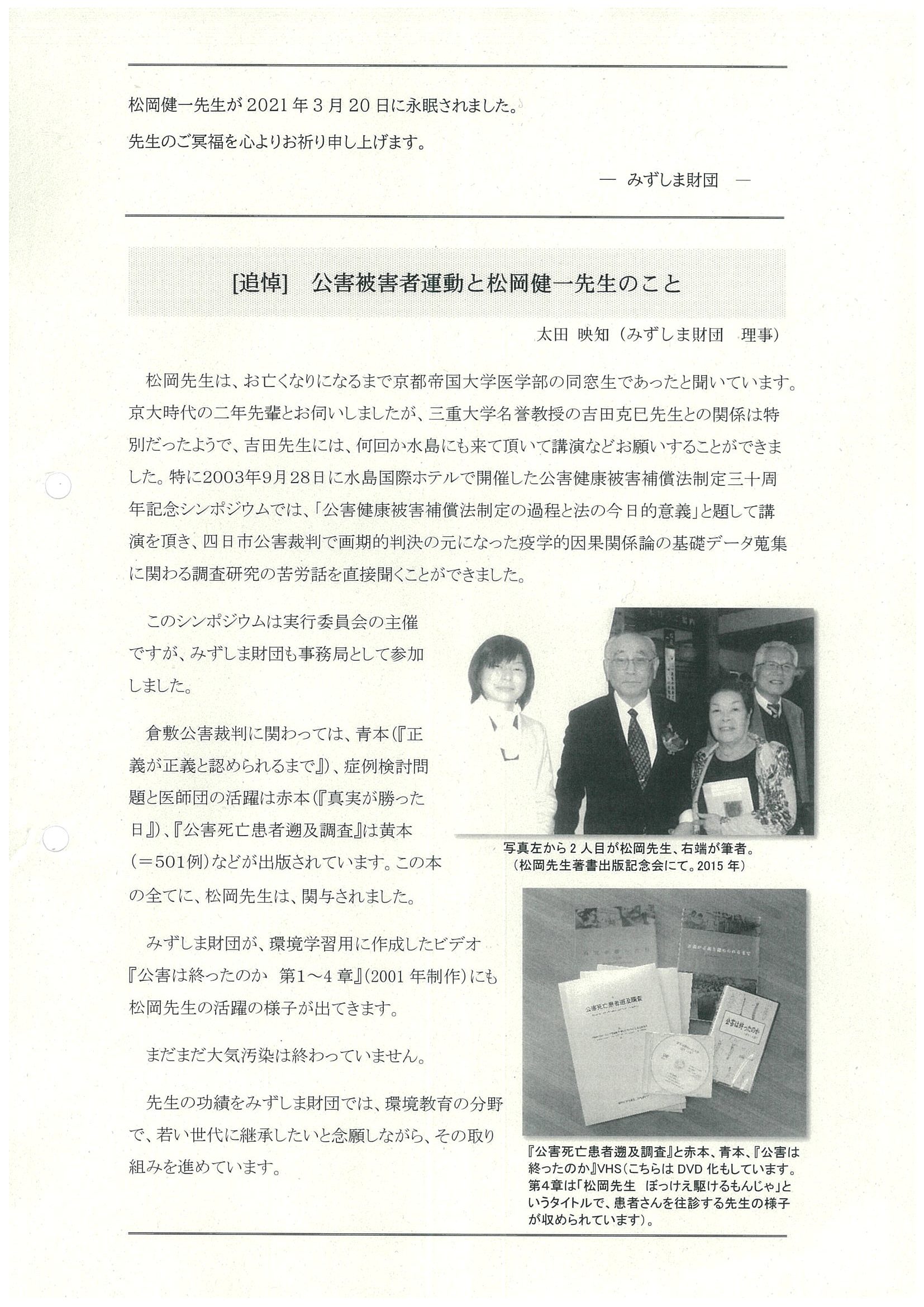 【別冊】『公害被害者運動と松岡健一先生のこと』太田映知