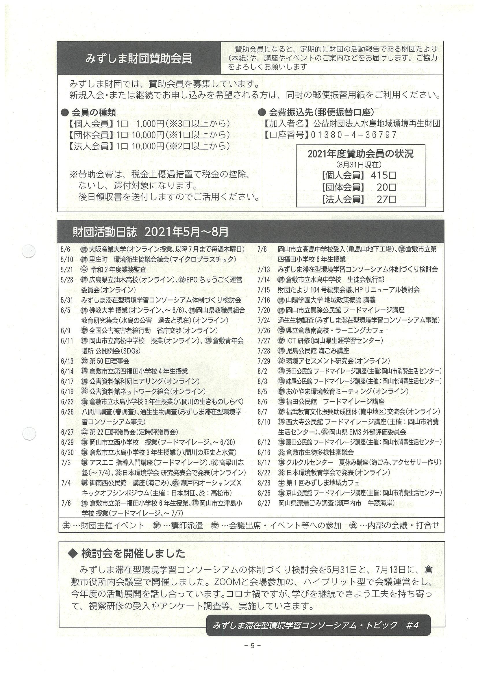■みずしま財団賛助会員、財団活動日誌5~8月