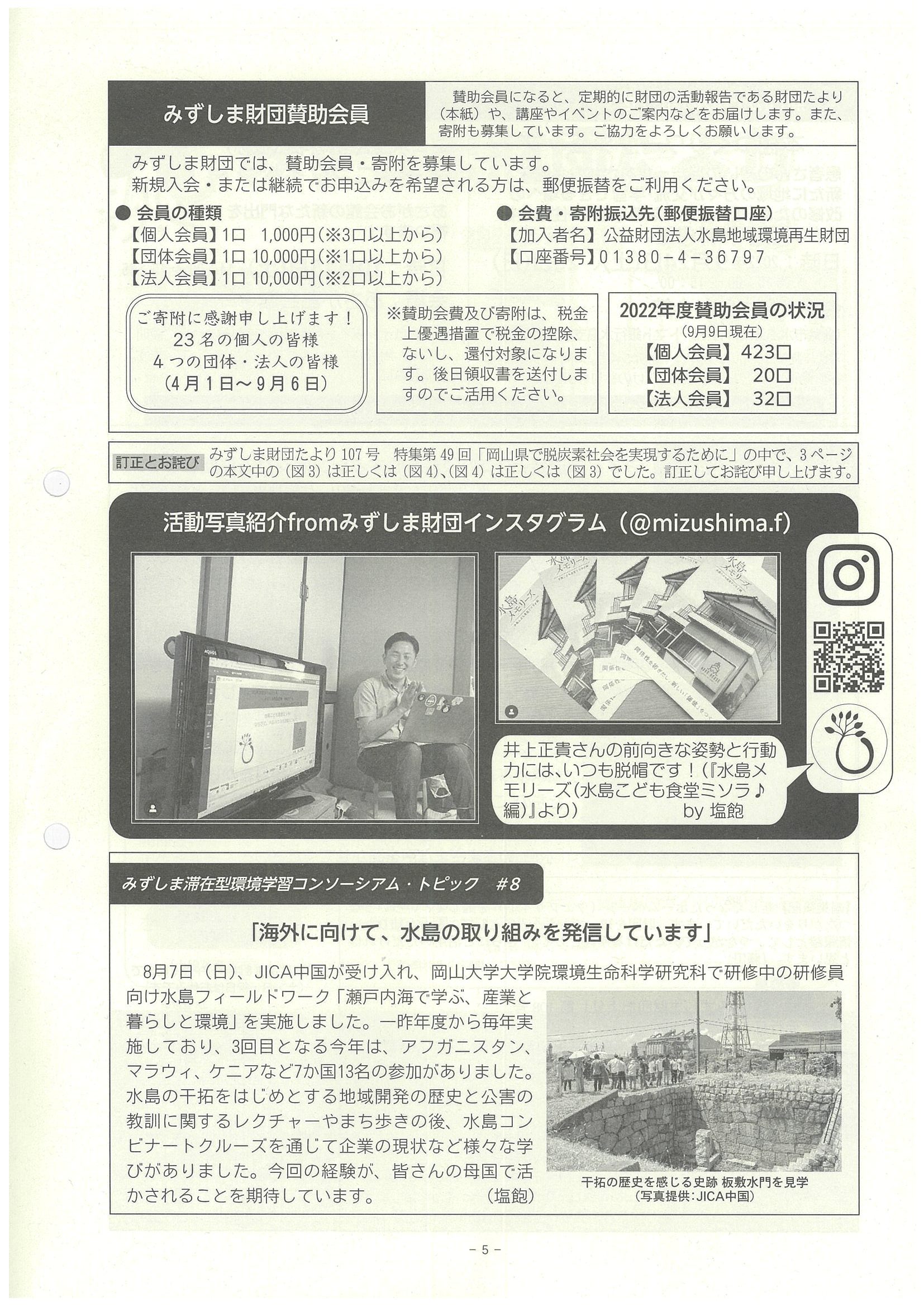 ■賛助会員・寄附、『活動写真紹介fromみずしま財団インスタグラム』