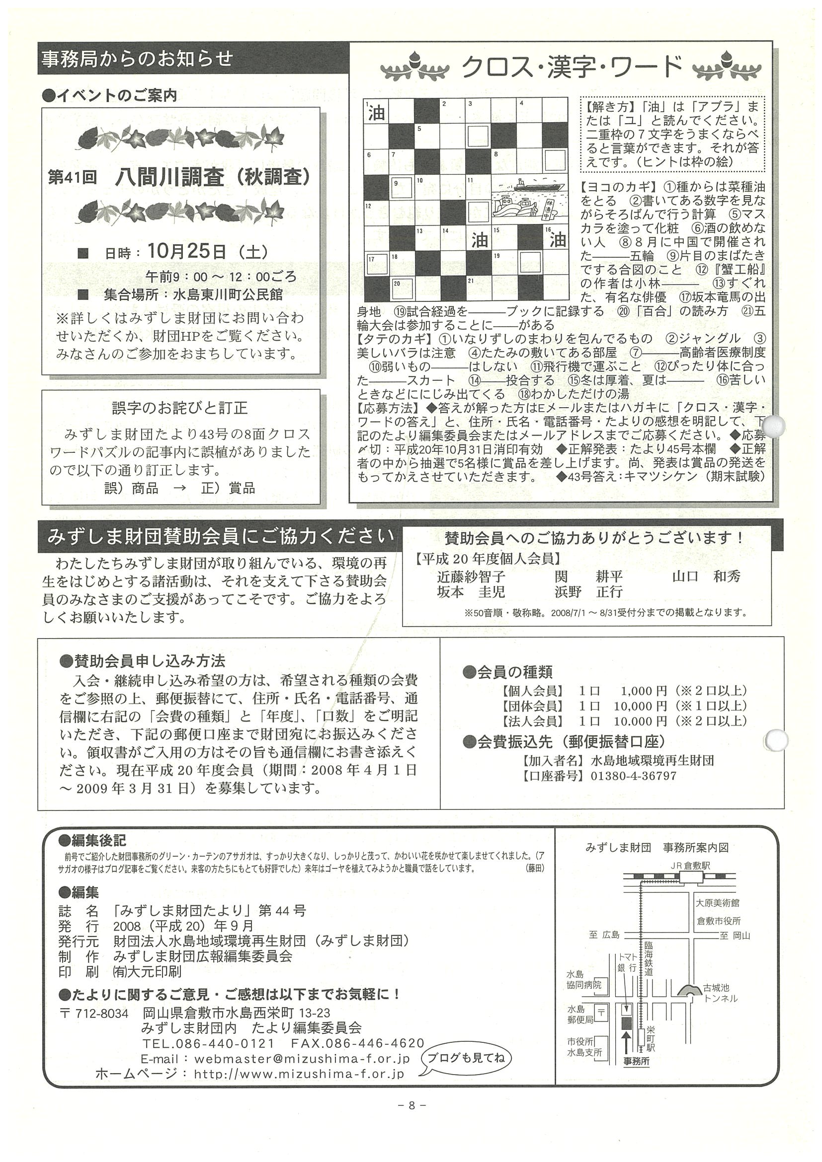 ■事務局からのお知らせ、みずしま財団賛助会員ご案内とご協力のお礼