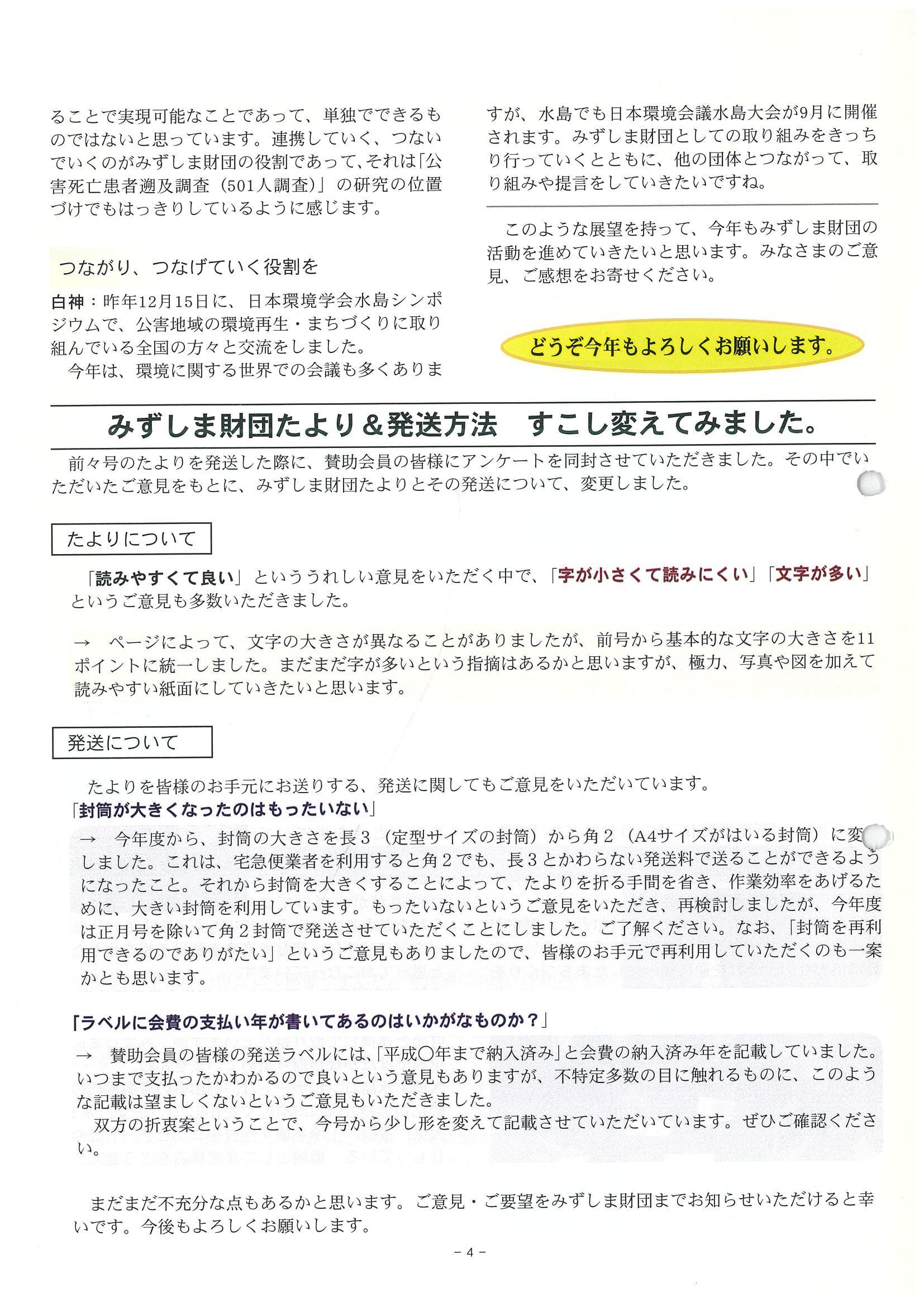 ■みずしま財団たより&発送方法 すこし変えてみました