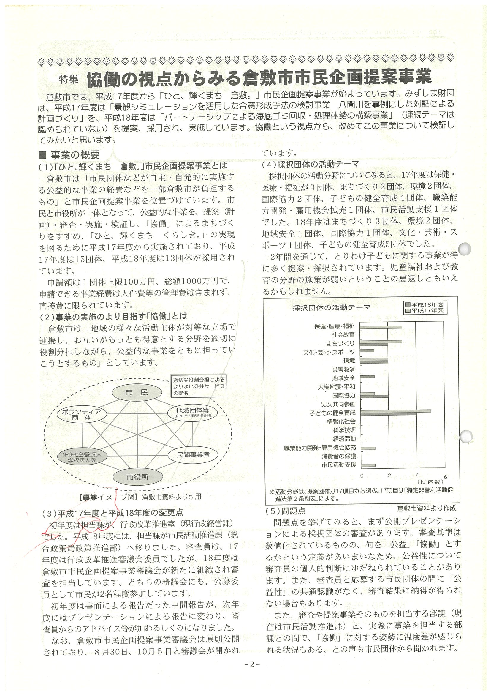 ■特集「検証・協働の視点からみる倉敷市市民企画提案事業 藤原園子