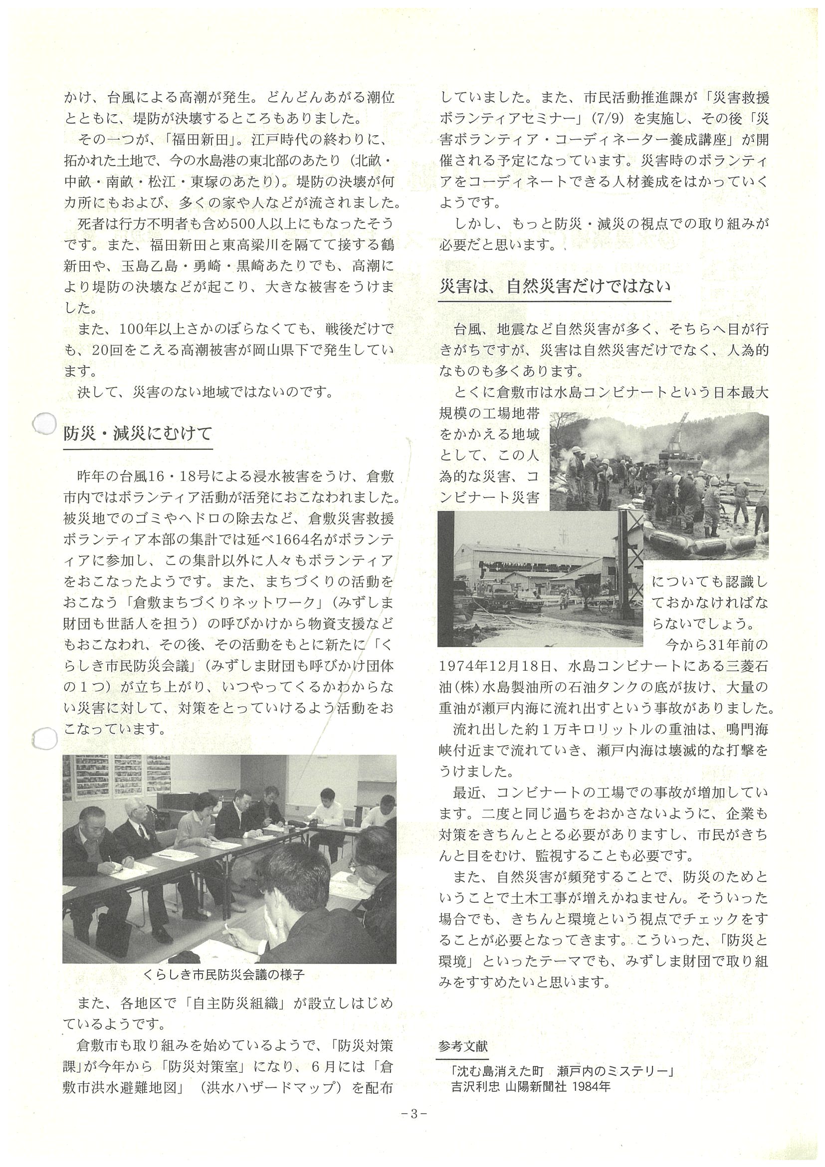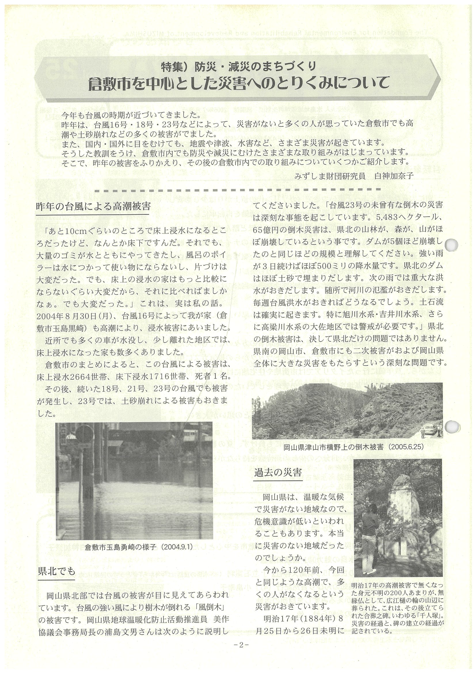 ■特集「―防災・減災のまちづくり―倉敷市を中心とした災害へのとりくみについて」白神加奈子