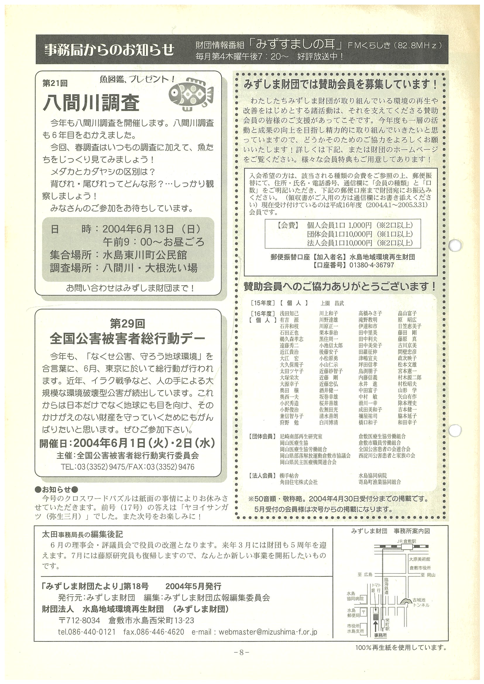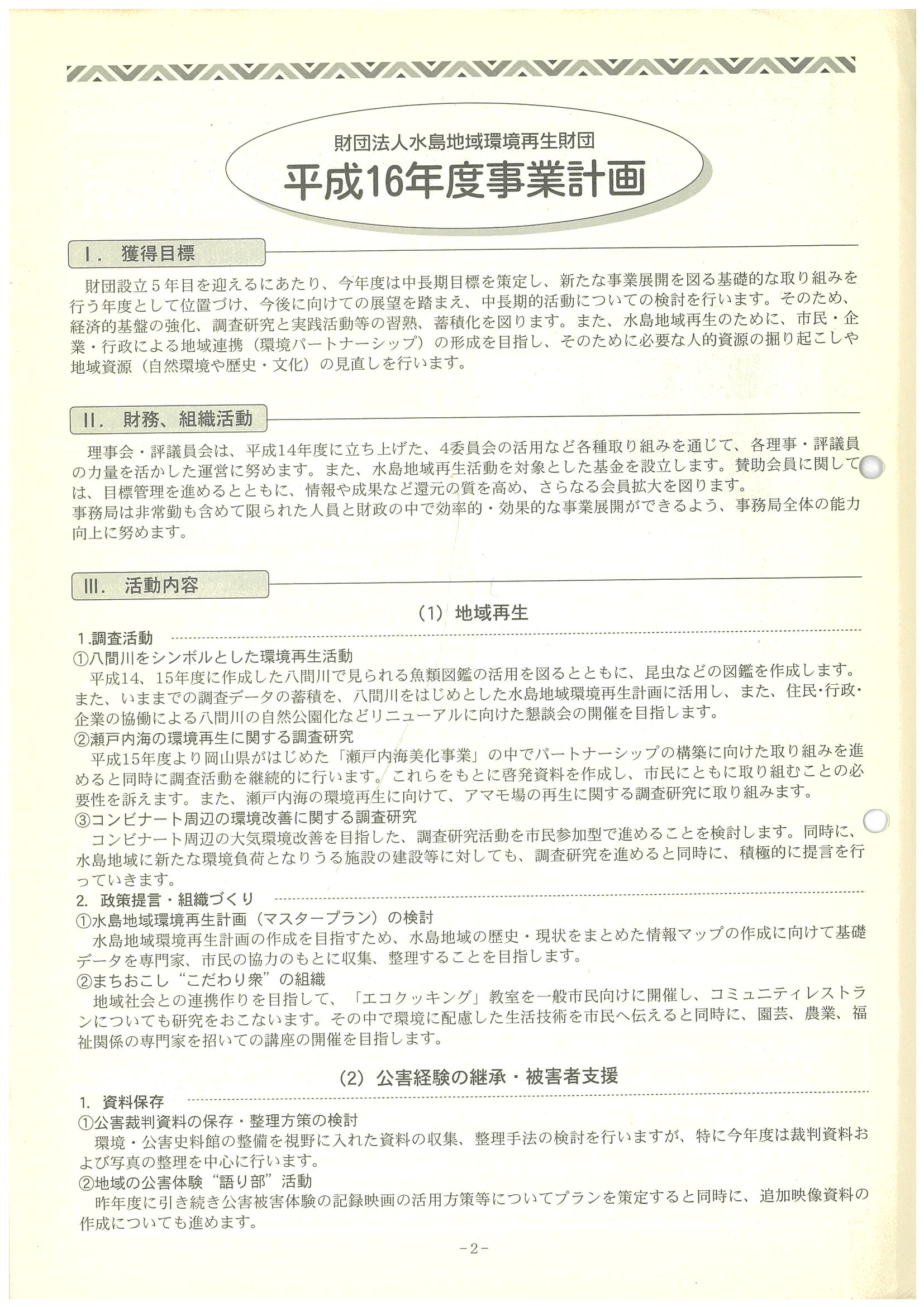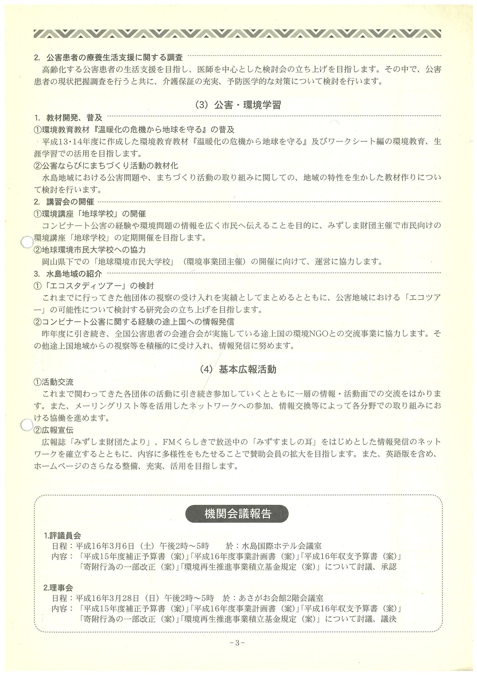 ■みずしま地域環境再生財団「平成16年度事業計画」機関会議報告