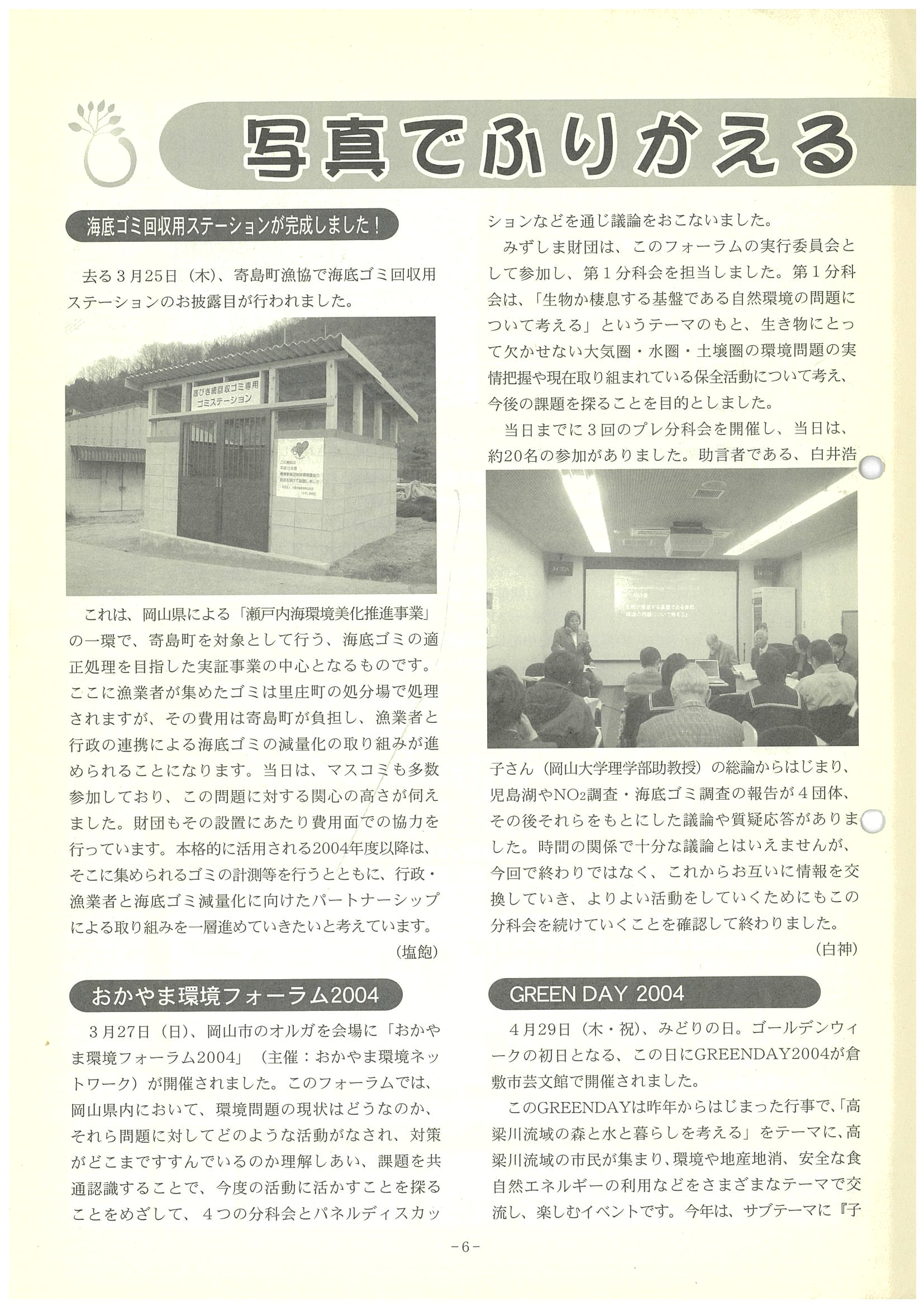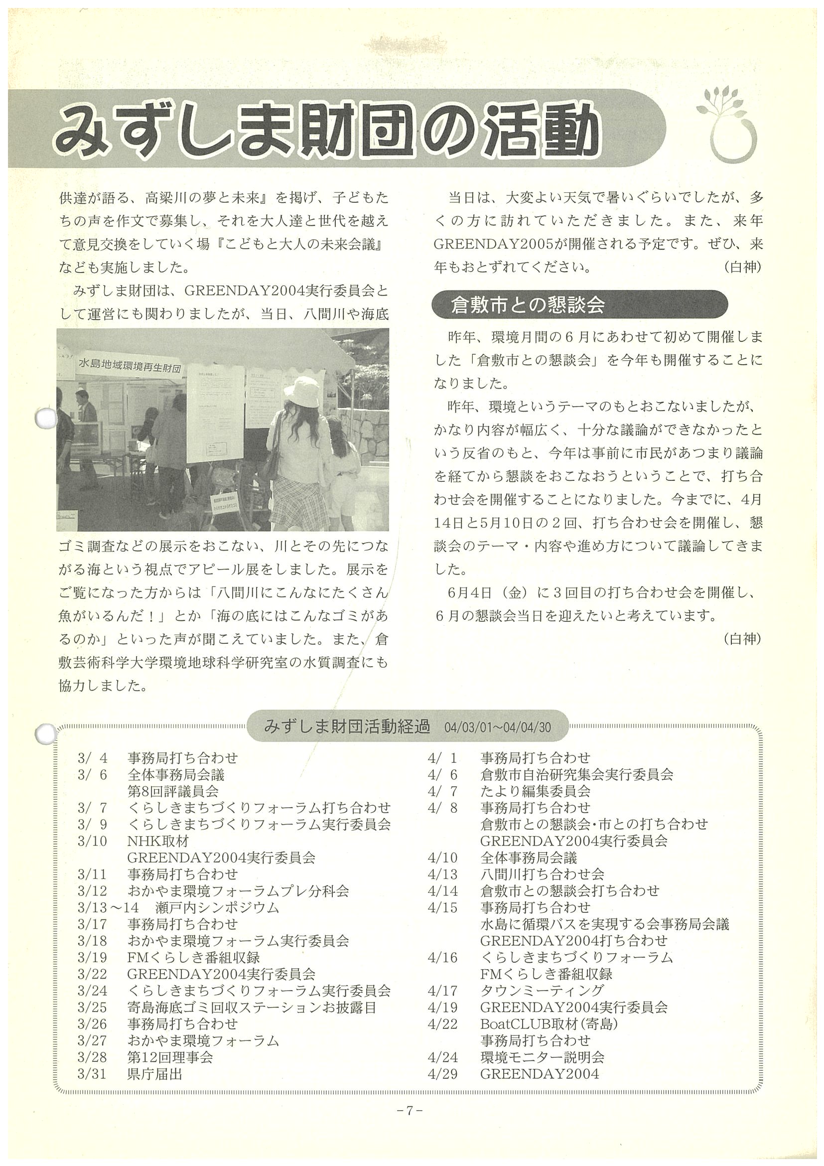 「海底ゴミステーション完成」「GREENDAY2004」「倉敷市との懇談」など