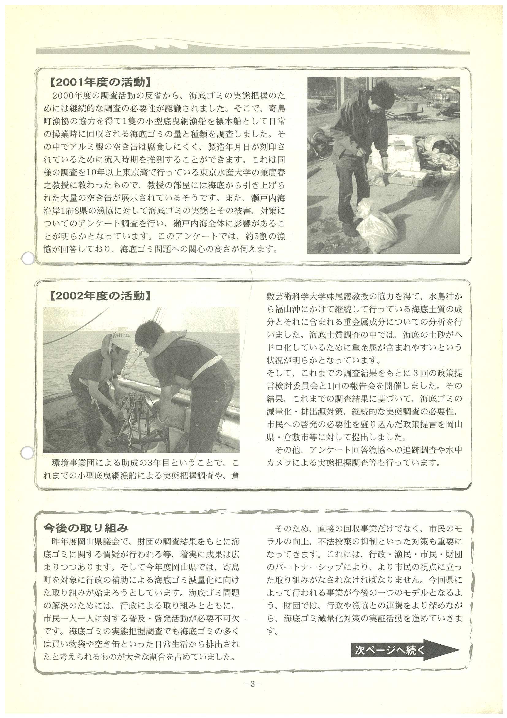 ■特集 海底ゴミ調査の3年間を振り返って