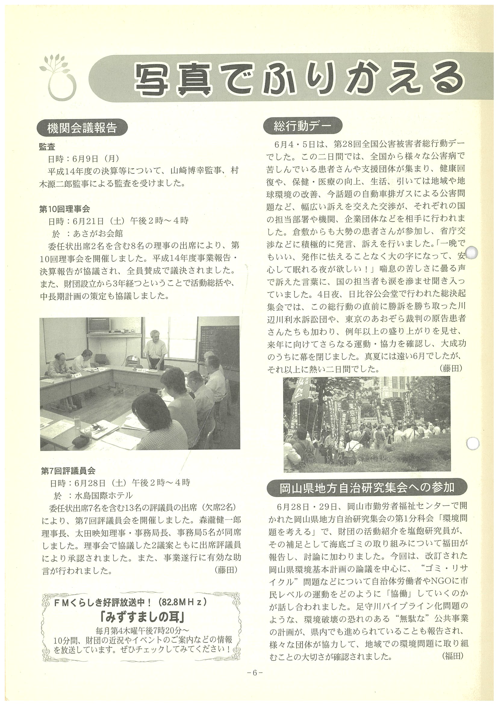 ■写真でふりかえるみずしま財団の活動「機関会議報告」「総行動デー」など