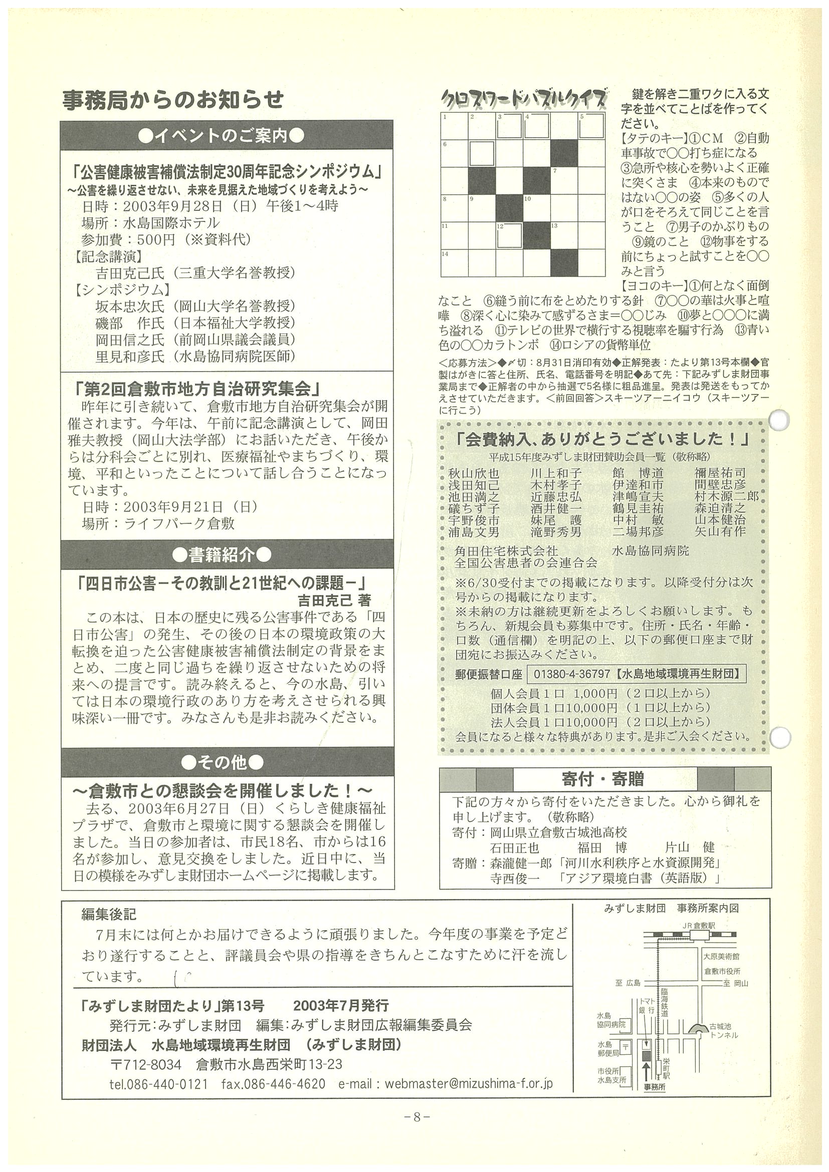 みずしま財団たより 13号