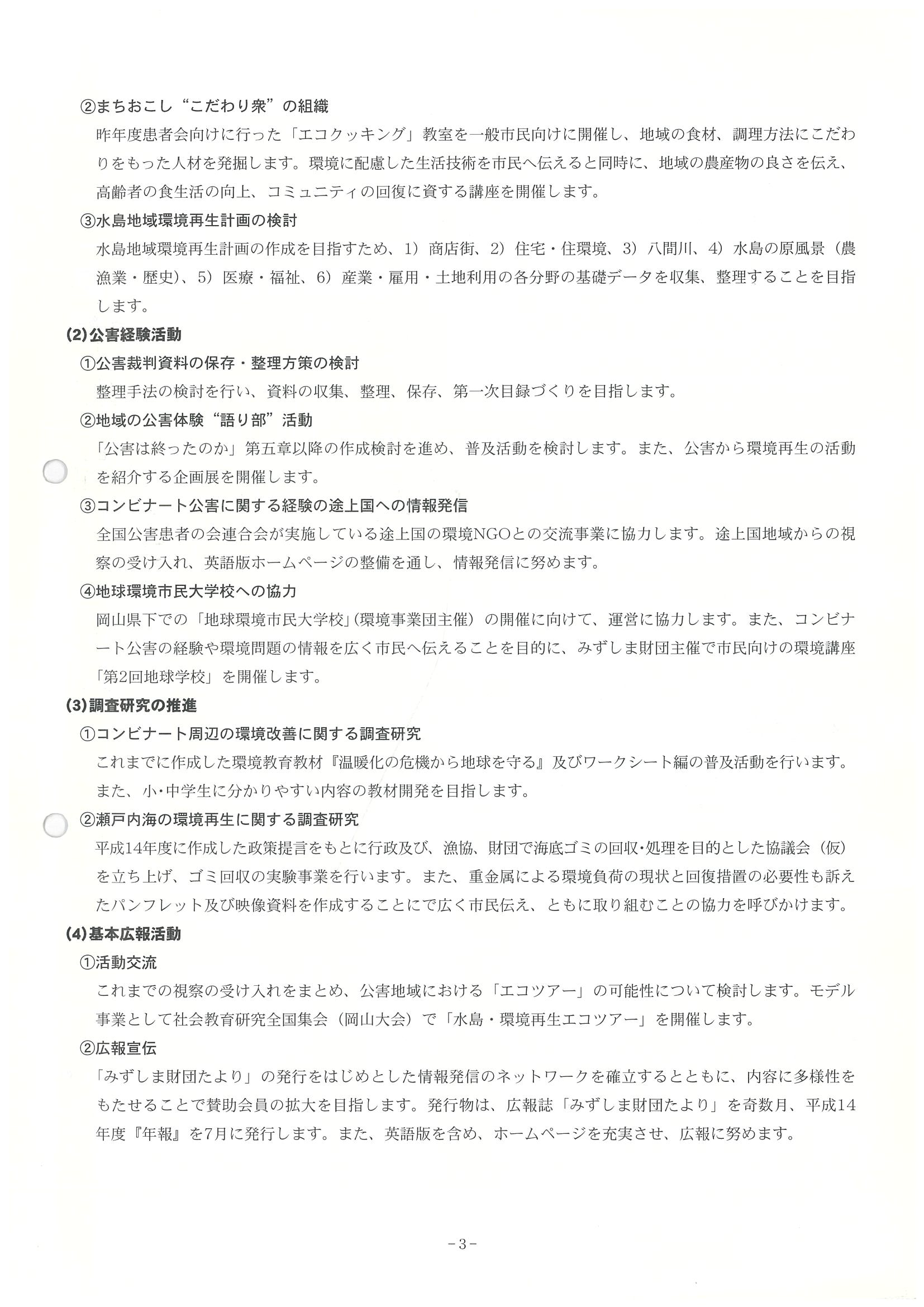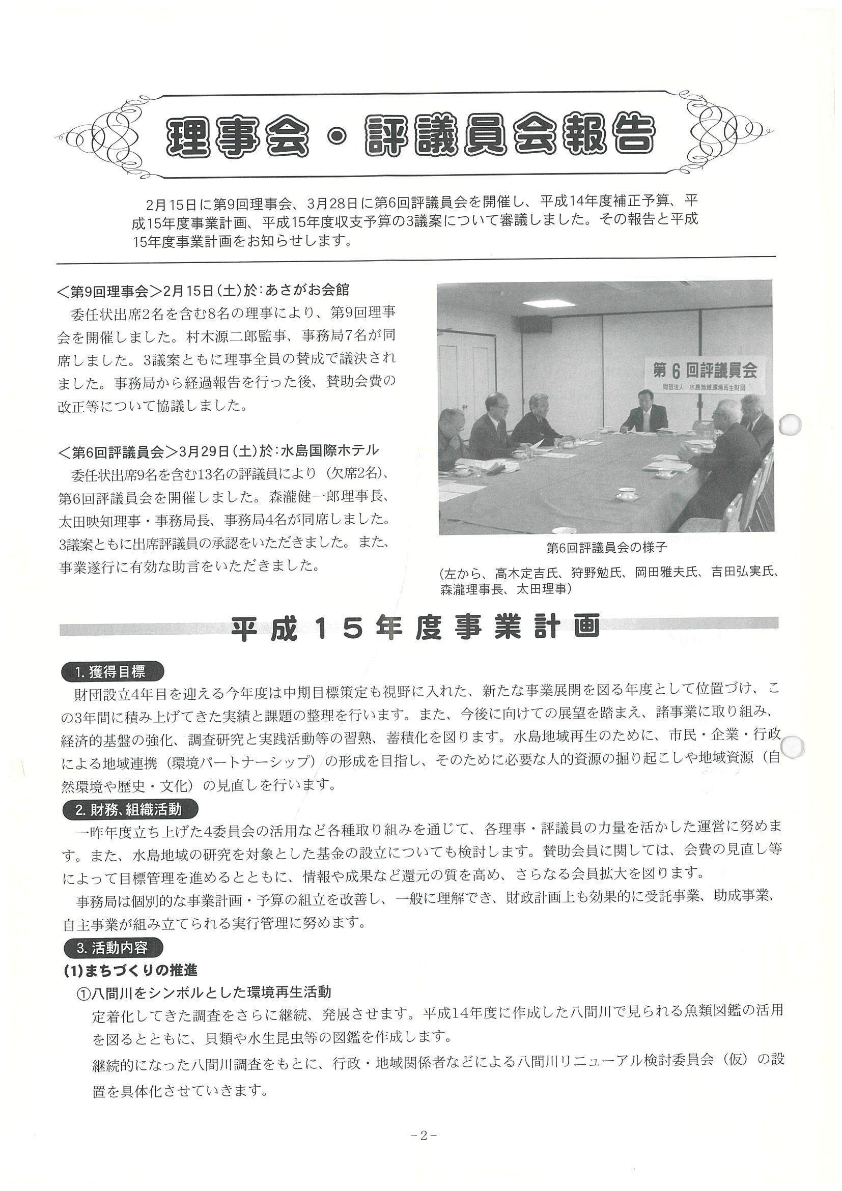 ■理事会・評議委員会報告・みずしま財団平成15年度事業計画
