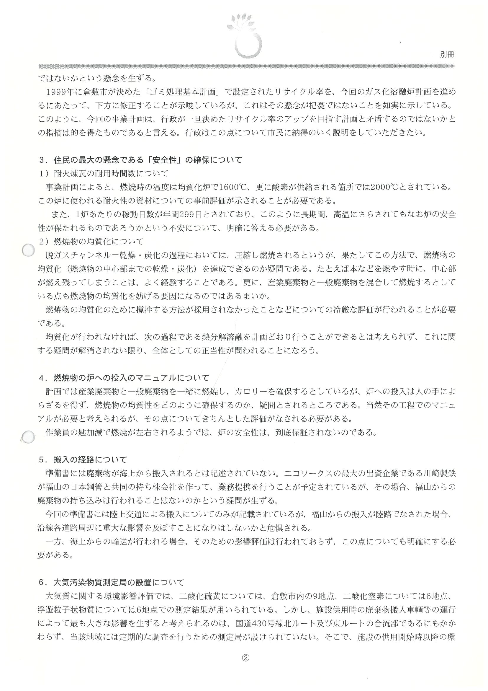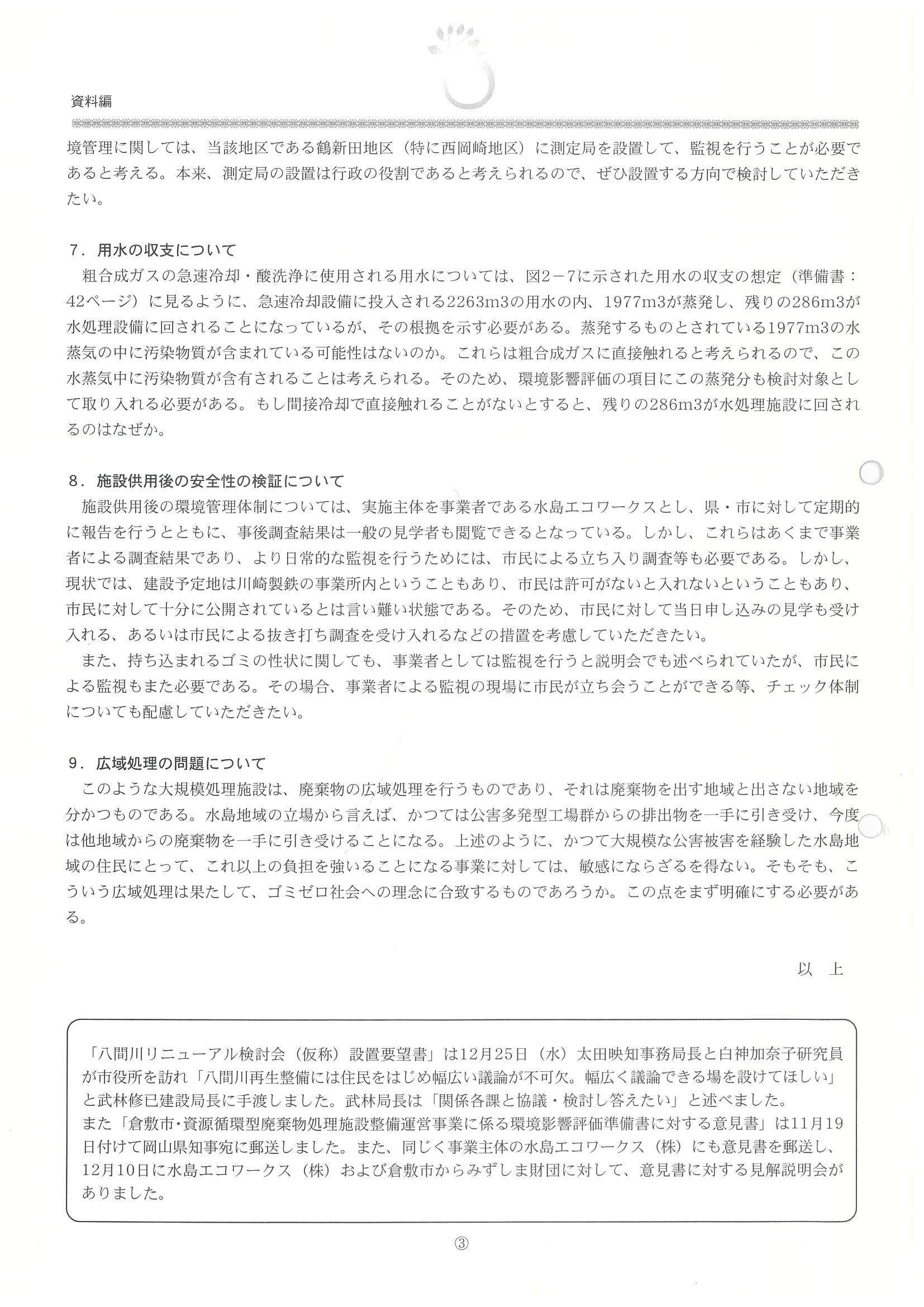 資料:倉敷市・資源循環型廃棄物処理施設整備運営事業に係る環境影響評価準備書に対する意見書