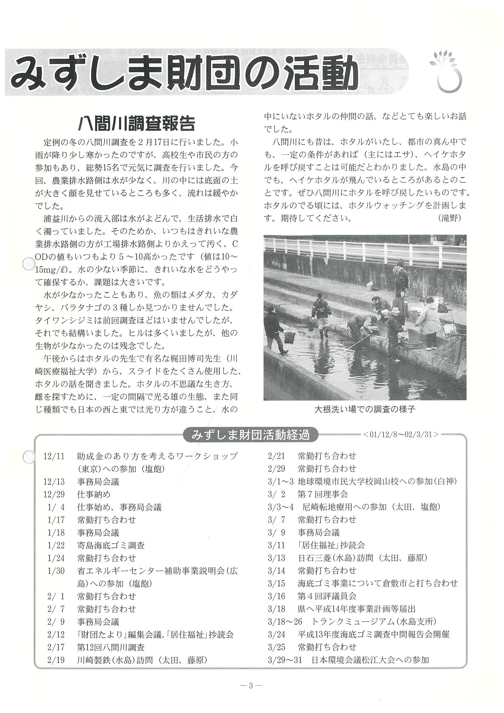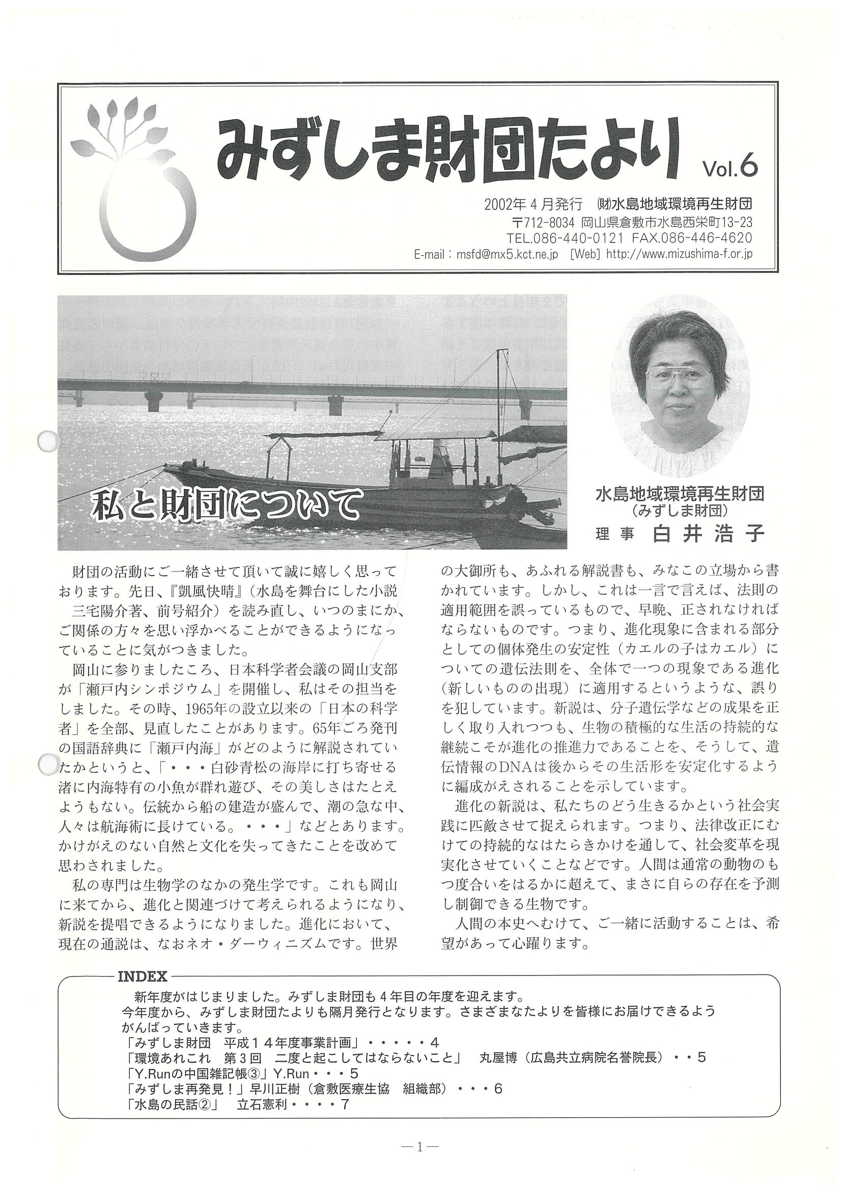 新年度がはじまりました。みずしま財団も4年目の年度を迎えます。今年度から、みずしま財団たよりも隔月発行となります。さまざまなたよりを皆様にお届けできるよう頑張っていきます。