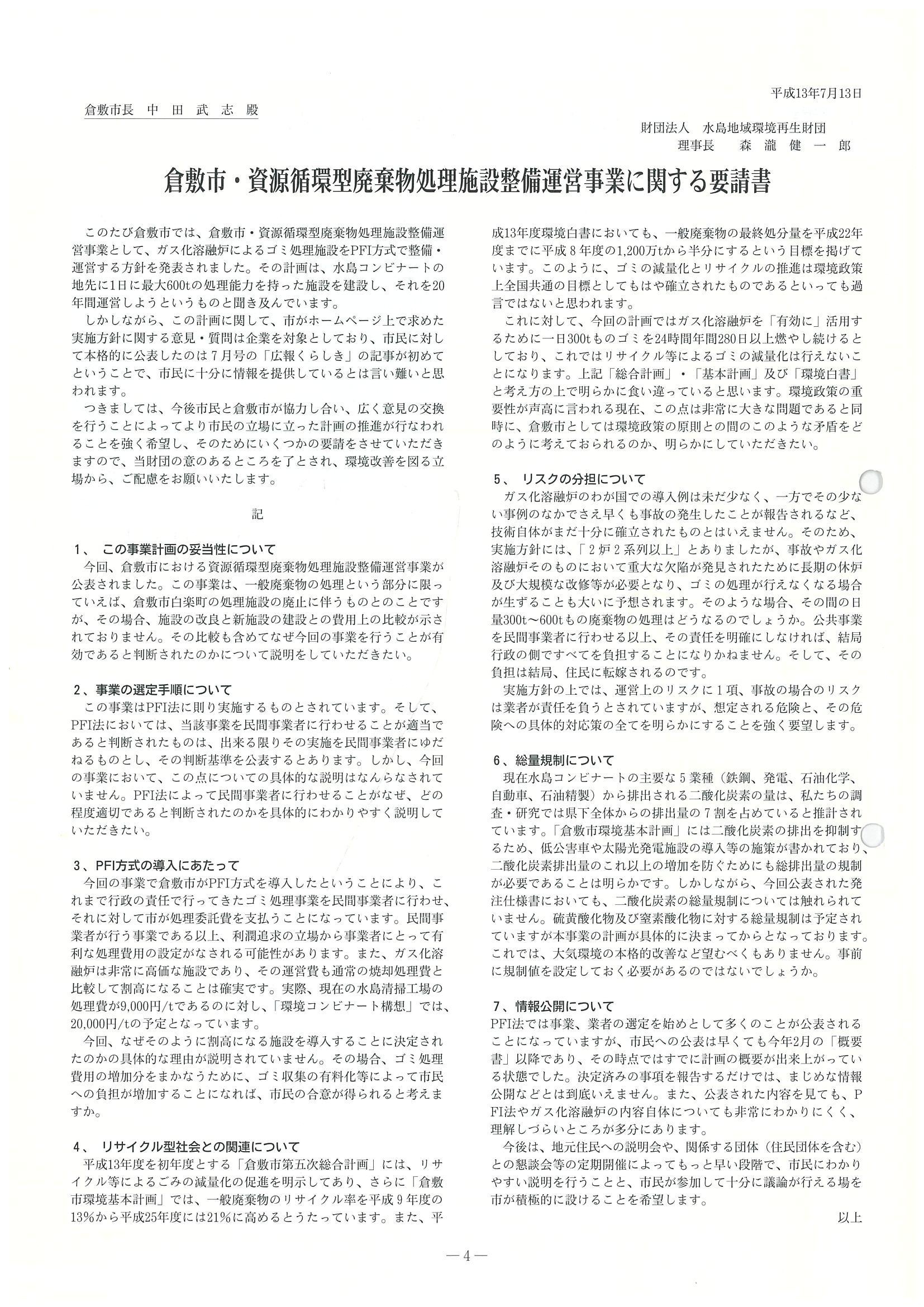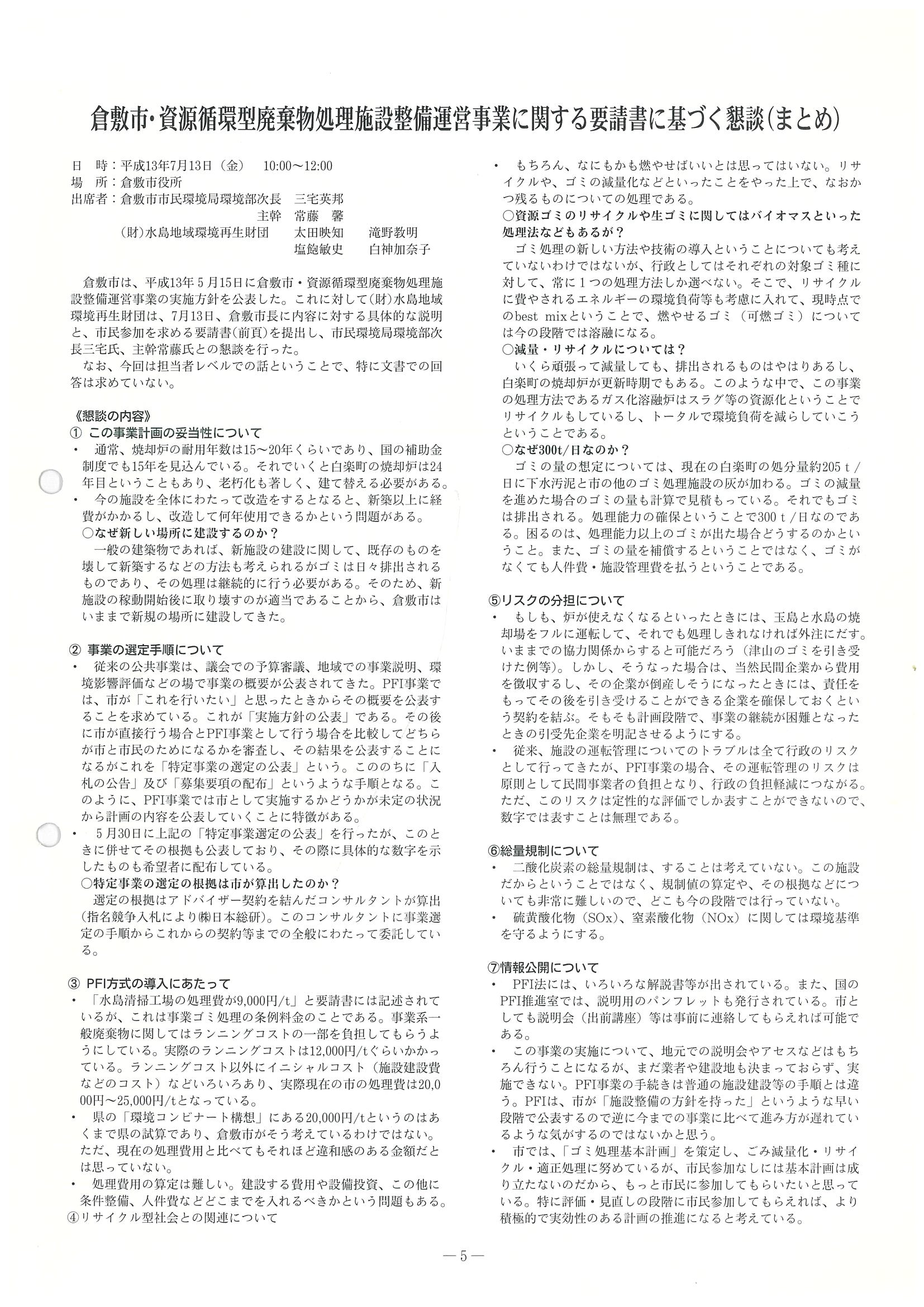 ■倉敷市・資源循環型廃棄物処理施設整備運営事業に関する要請書及び懇談のまとめ