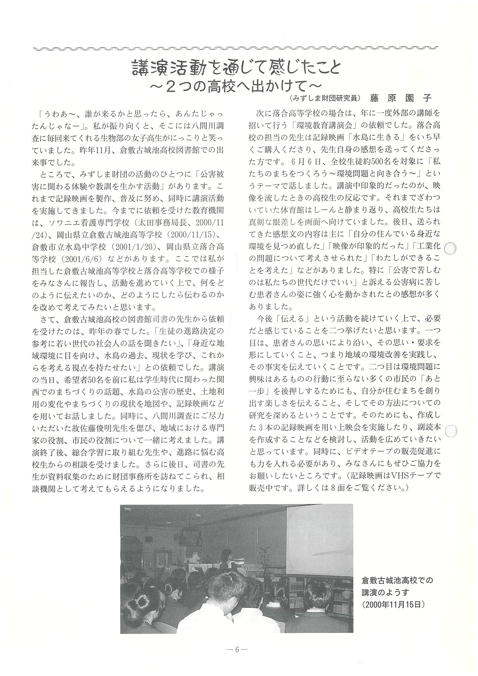 ■「講演活動を通じて感じたこと」藤原園子(みずしま財団研究員)